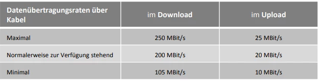 Ok… wenn Du 250/25 hast klingt das für mich nach DSL und nicht nach einem Kabelanschluss.