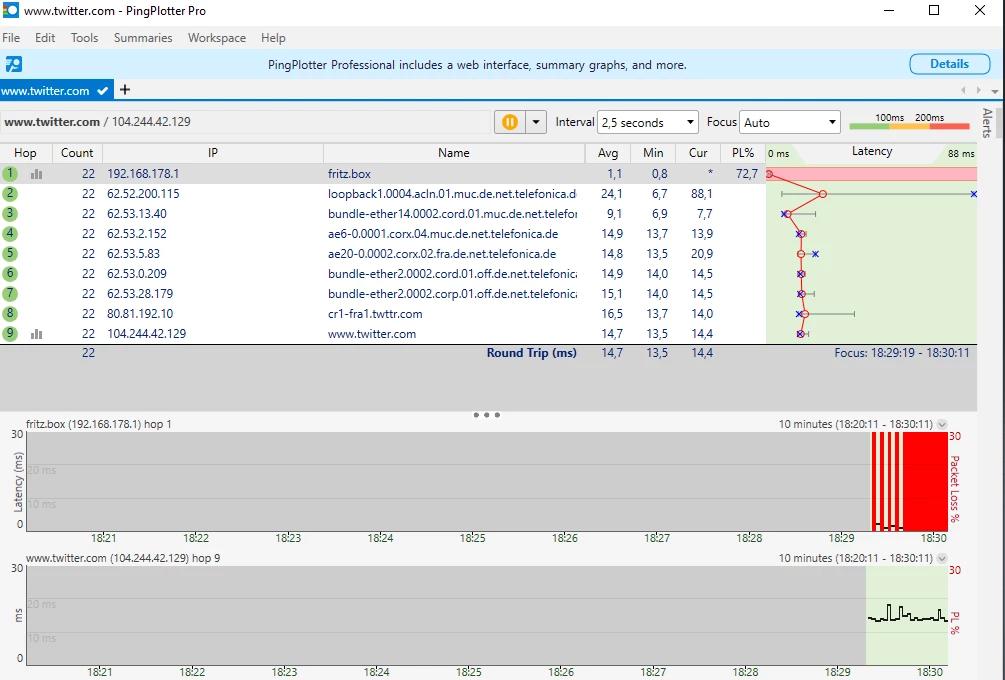 Mehr als ein Trace parallel laufen lassen? Gratuliere, auf einmal scheint es so, als ob die Fritzbox jede Menge Packets verliert.