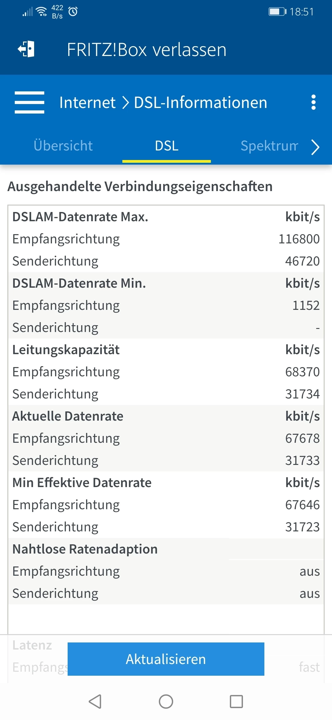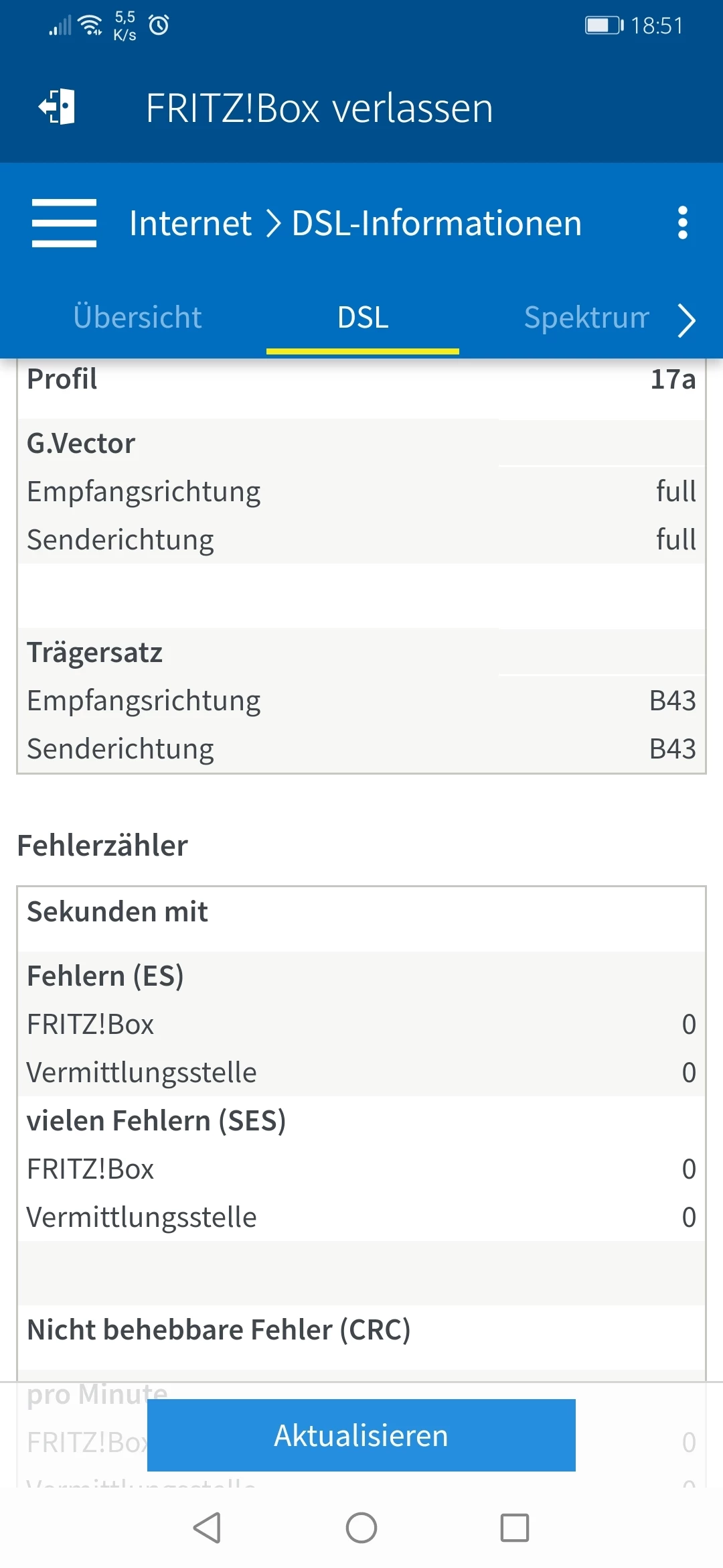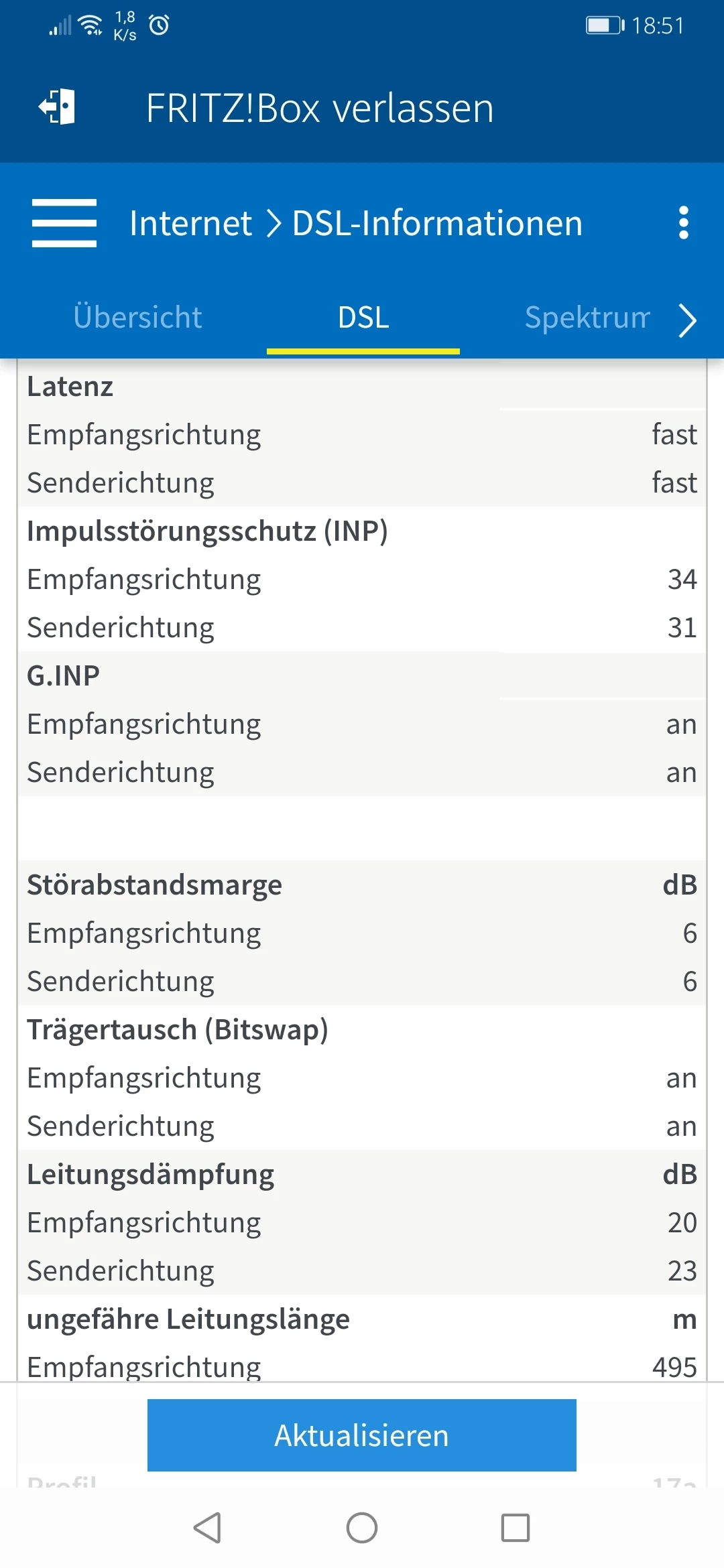 Von den Abbrüchen ist es sehr viel besser geworden. An den Werten der DSL Verbindung in der Fritzbox hat sich nix groß verändert.