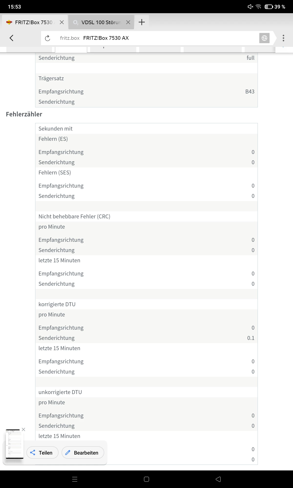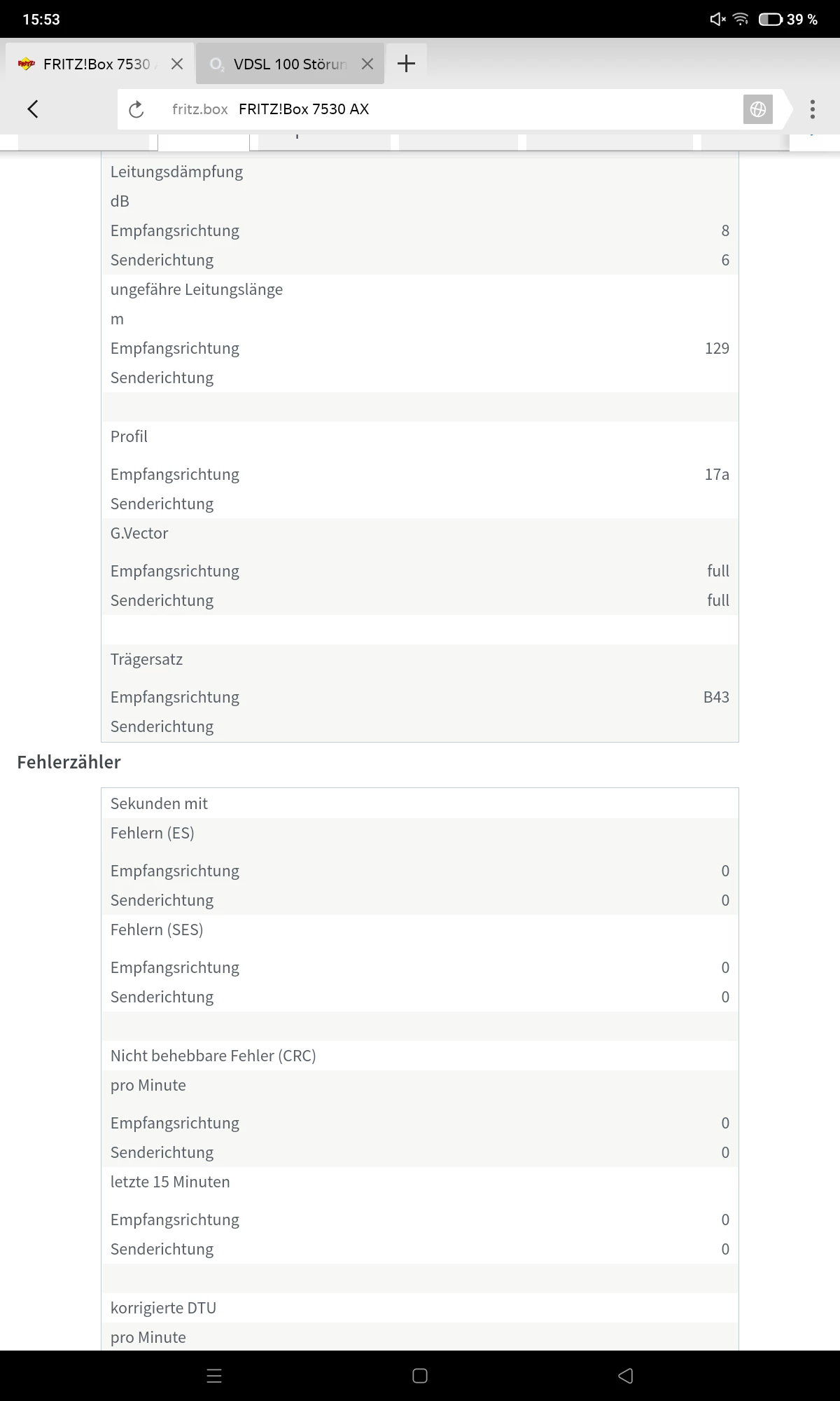 In der Fritzbox stehen nach der Neusyncronisation aller Fehlerzähler auf Null, ebenso in den Supportdaten beider Anschlüsse.