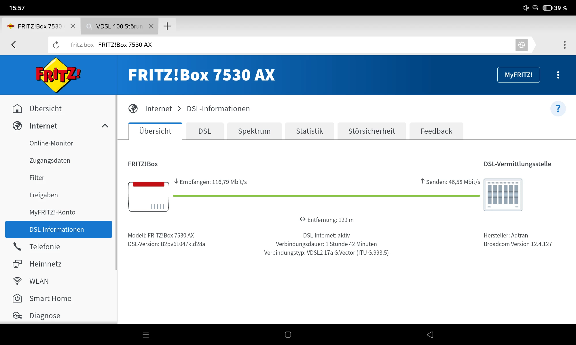 Ich vermute das der Fehler nicht im Haus zu suchen ist, sondern der Telekom MSAN in rund 100m Entfernung nicht einwandfrei funktioniert.