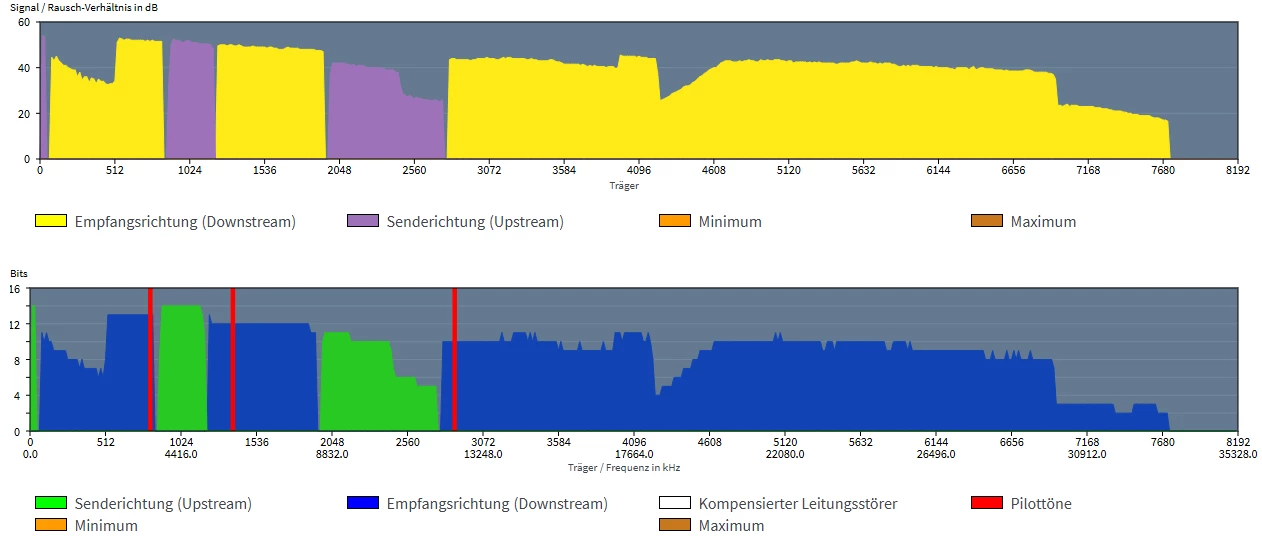 Ist aus Endkundensicht nicht so leicht zu diagnostizieren, das beste was wir haben sind die Spektren mit Miniumum und Maximum ueber laengere Dauer. Und Hlog und QLN Plots koennen auch noch interessant sein, aber letztlich ist es die Telekom und deren Techniker die da etwas reparieren koennen.