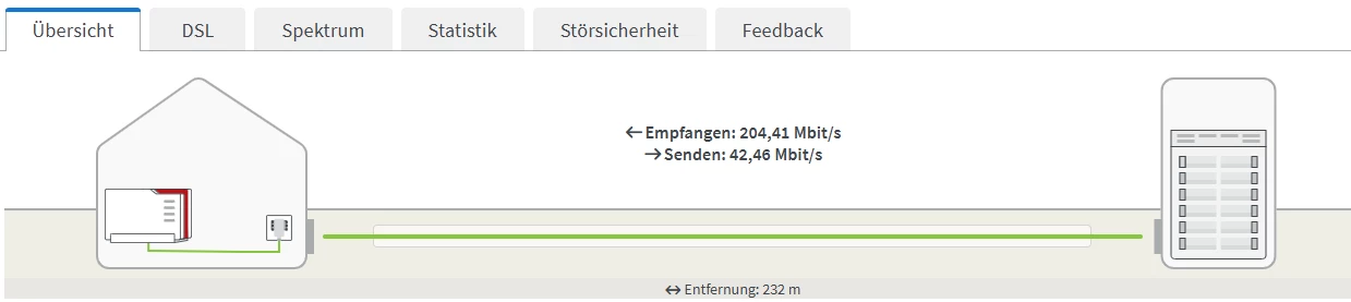 die letzte paar Tage ist dieser ASSIA Sync 204,41MBit/s