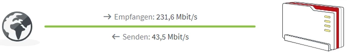 Bezueglich Deines letzten Screenshots, die beiden in Screenshot mit dem “Haus” sind die brutto Syncwerte, die Werte auf dem Screenshot mit der Weltkugel zeigen IMHO irgendwelche undefinierten Netto-Datenraten an.