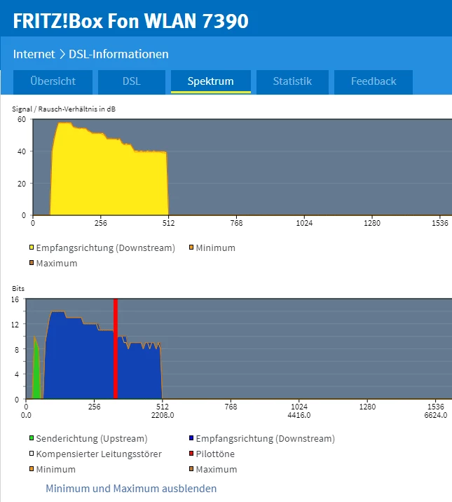 Das sieht nach non-vektoring Fallback Profil aus (VDSL2 nur im Breiech bis 2.2 MHz, bzw. Traeger 512).