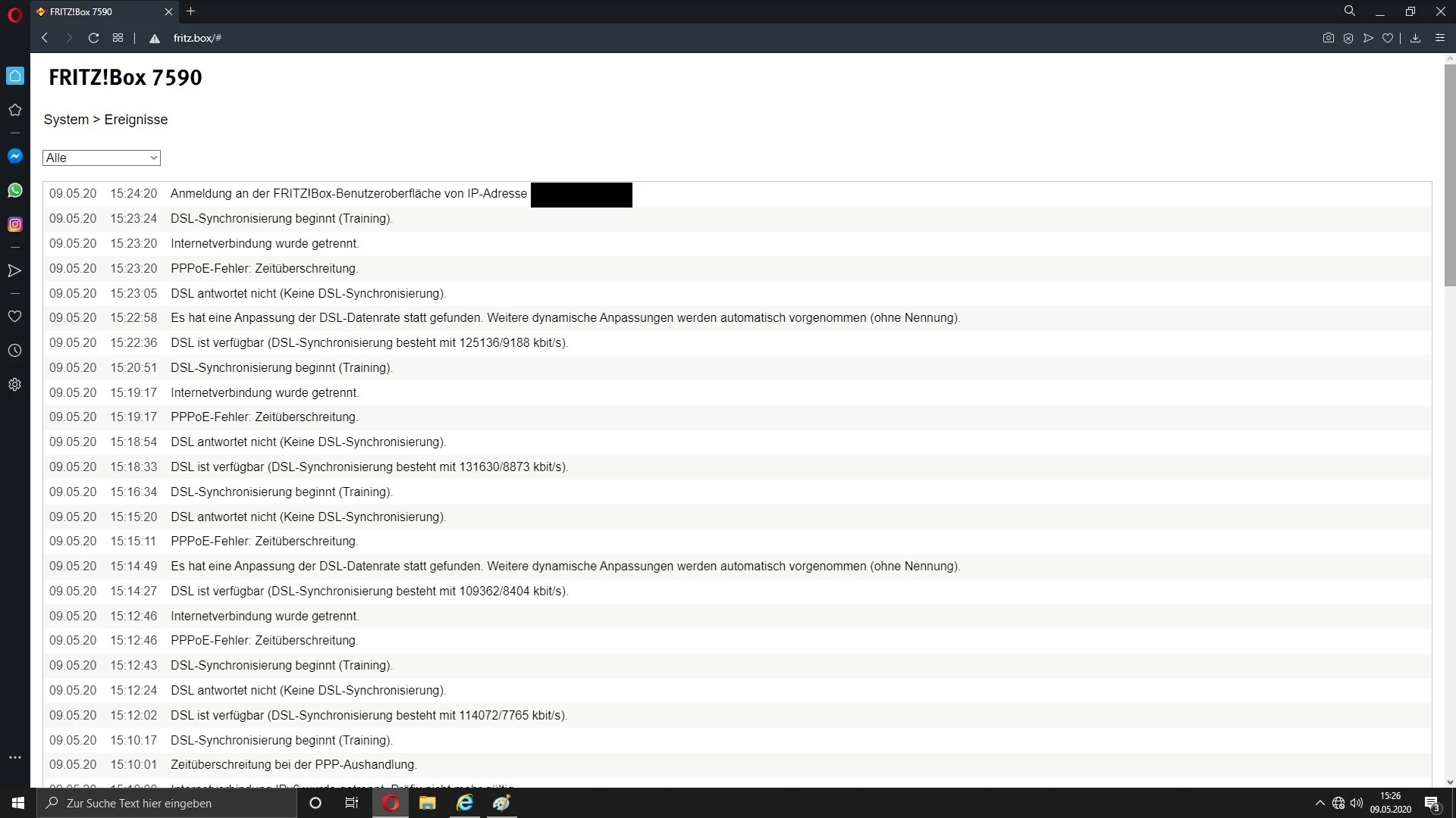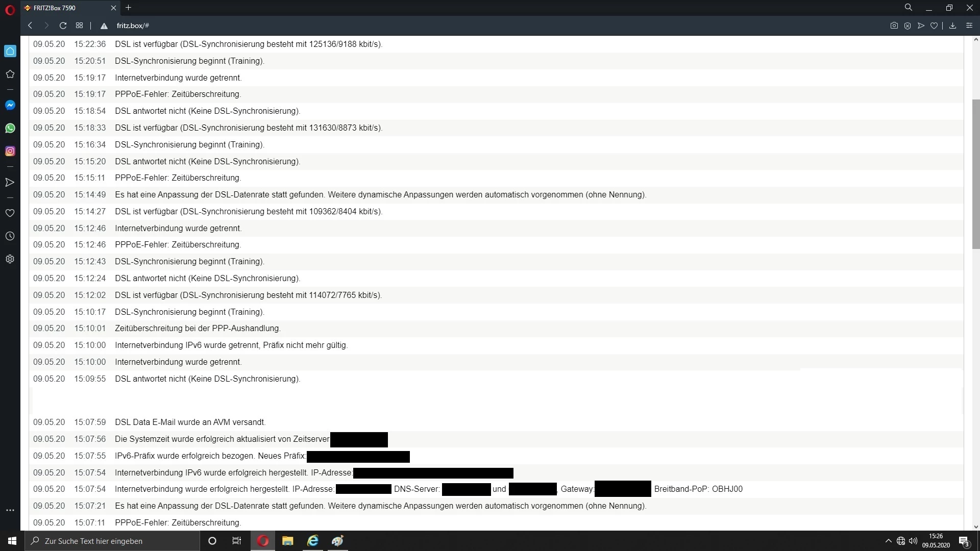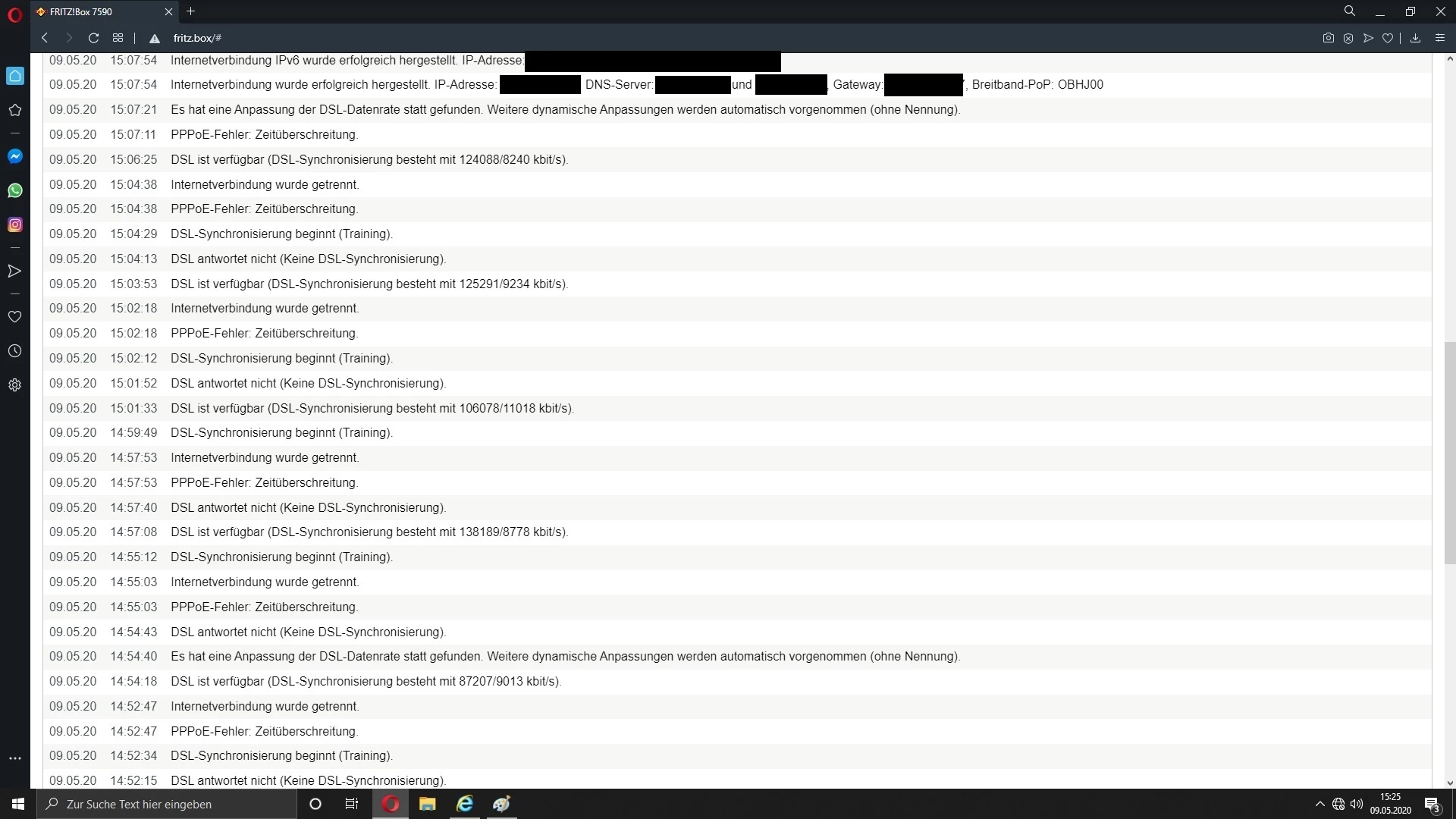 Das Ganze geht so schon seid geraumer zeit (mal mehr mal weniger wild, Täglich aber mindesten 2-XX Abbrüche und dann war es ein guter Tag). Auch mehrere anrufe bei der Hotline bringen keinen Erfolg. Die Steigleitung von APL zur Wohnung wurde beim Einzug am 31.11.2019 komplett neu gelegt.