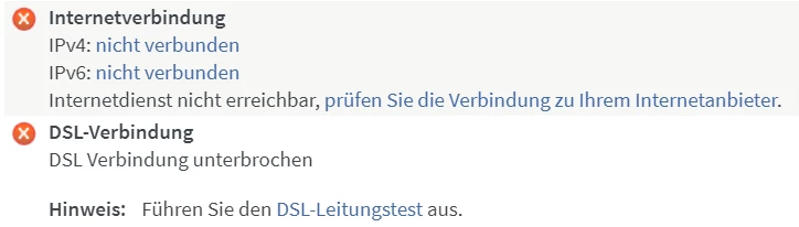 Nach dem ich die Fritzbox auf Werkseinstellung gesetzt habe, bin ich dem Einrichtungsassistenten der Fritzbox gefolgt. Da eine Fehlermeldung auftrat, habe ich die Diagnose gestartet