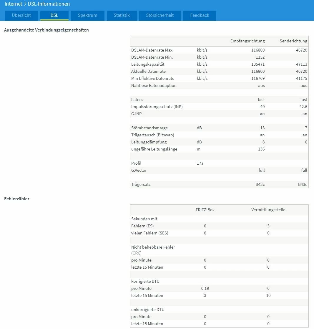 Nach den 3 Tagen dann bitte die Seiten Übersicht, DSL (auch weiter unten die Fehler), Spektrum und Statistik (Woche) als Bild hochladen.
