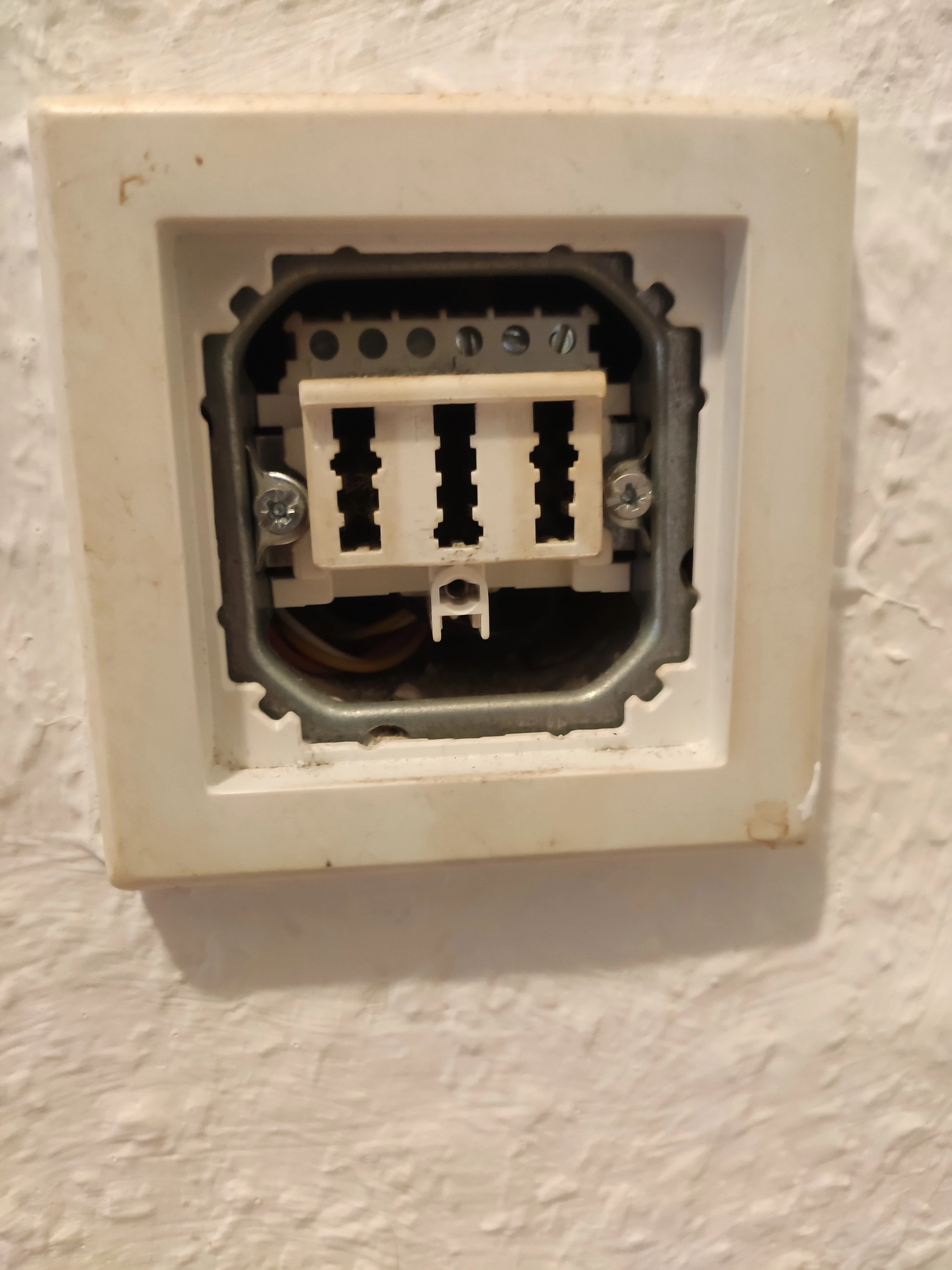 Nein kein Powerline, nur eine TAE-Dose in der ganzen Wohnung, hier zwei Bilder der Dose: