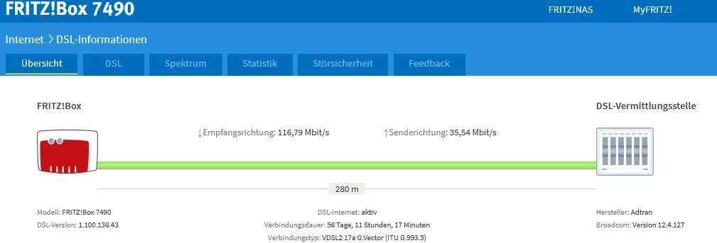 Es könnte sein, dass es in ein paar Tagen wieder einen Reconnect geben und ASSIA auf 46 MBit/s im Upload öffnen könnte (aktuell nur 42 MIbit/s).