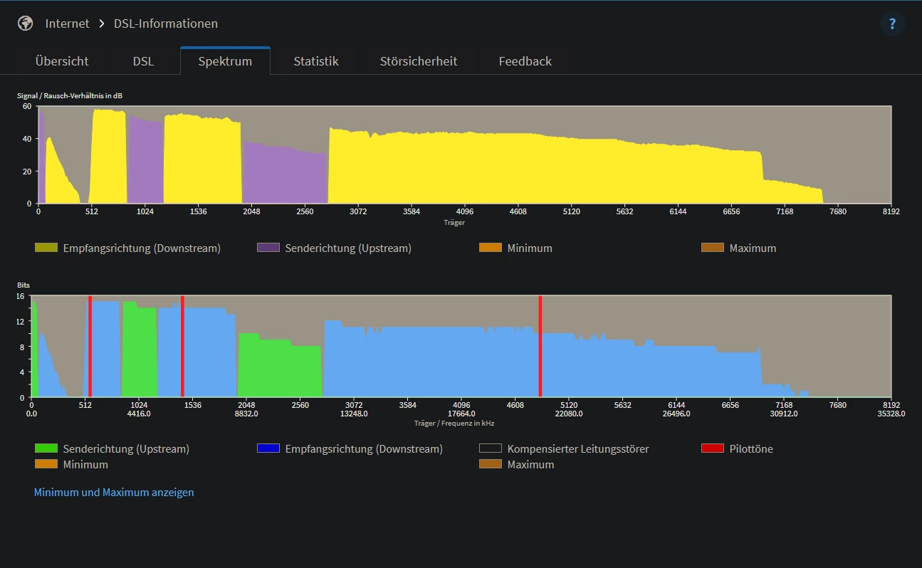 Hab hier noch zwei Screenshots. Einmal aus dem DSL-Tab und einmal vom Spektrum.