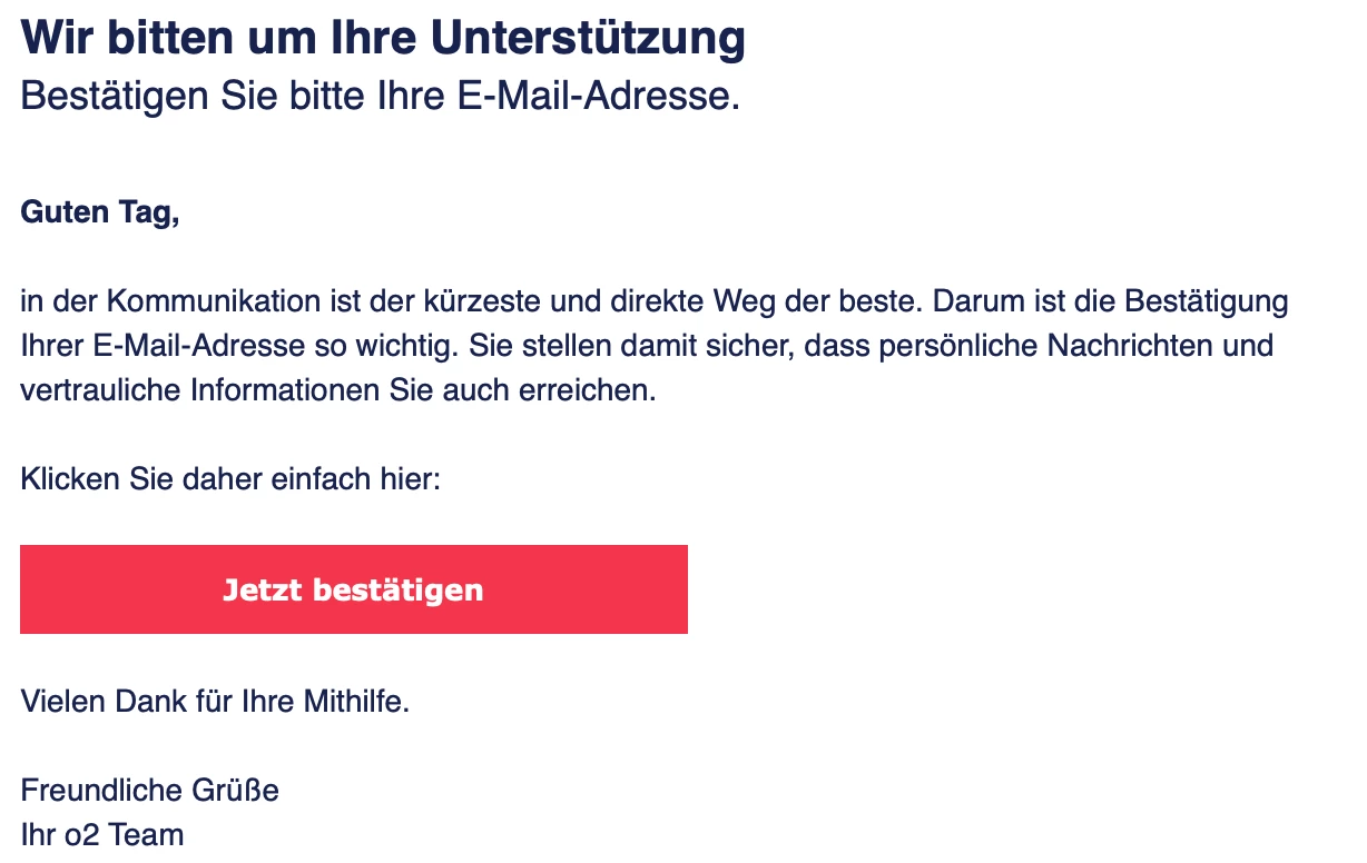 Leider konnten wir Ihre E-Mail Adresse nicht erfolgreich verifizieren. Bitte loggen Sie sich dazu in Ihrem Mein O2 Bereich ein und überprüfen Sie die Daten auf Richtigkeit. Aber in meinem Bereich steht, dass die Verifizierung aussteht. Leider ist es ein never Ending Teufelskreis der Fehlermeldungen. Also ich würde wirklich wahnsinnig gerne mit o2 kooperieren und alles angeben, bezahlen etc. Aber ich glaube ich muss dazu bald einen Tag Urlaub einreichen, so viel Zeit kostet mich das alles.