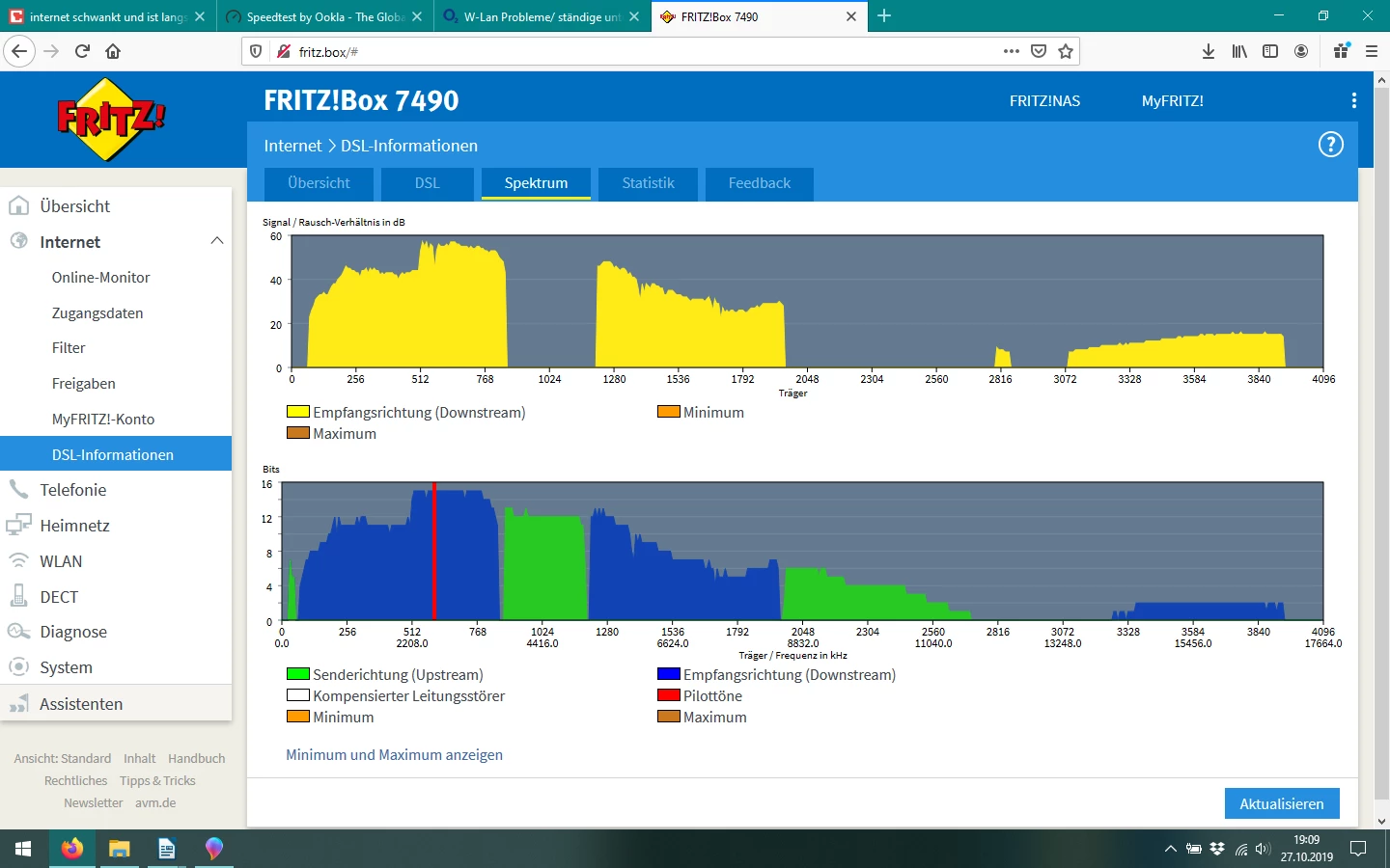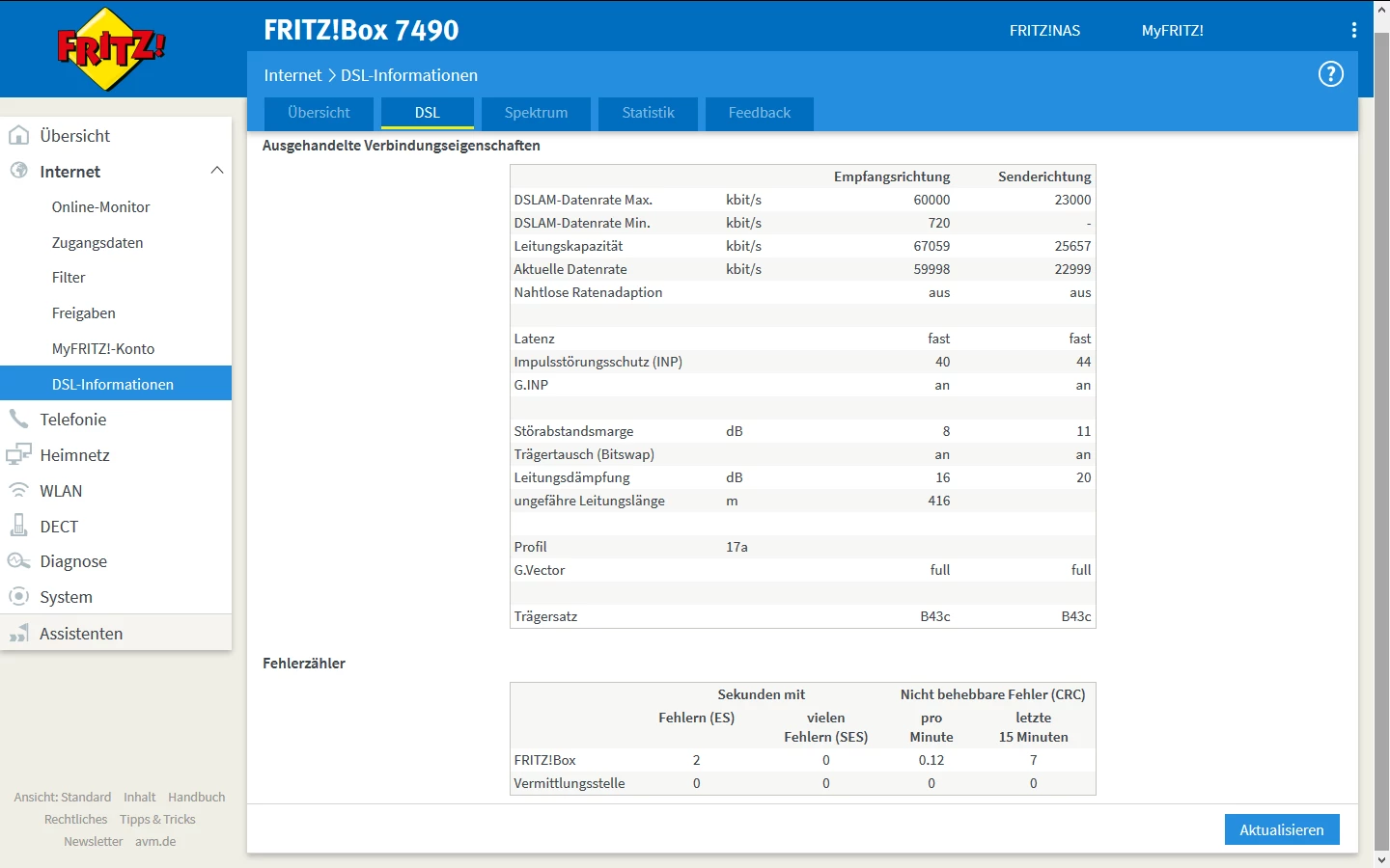 @Maheret könntest Du bitte Screenshots von der Fritzbox einstellen? Internet / DSL Informationen dann von den Reiter Übersicht, DSL und Spektrum.