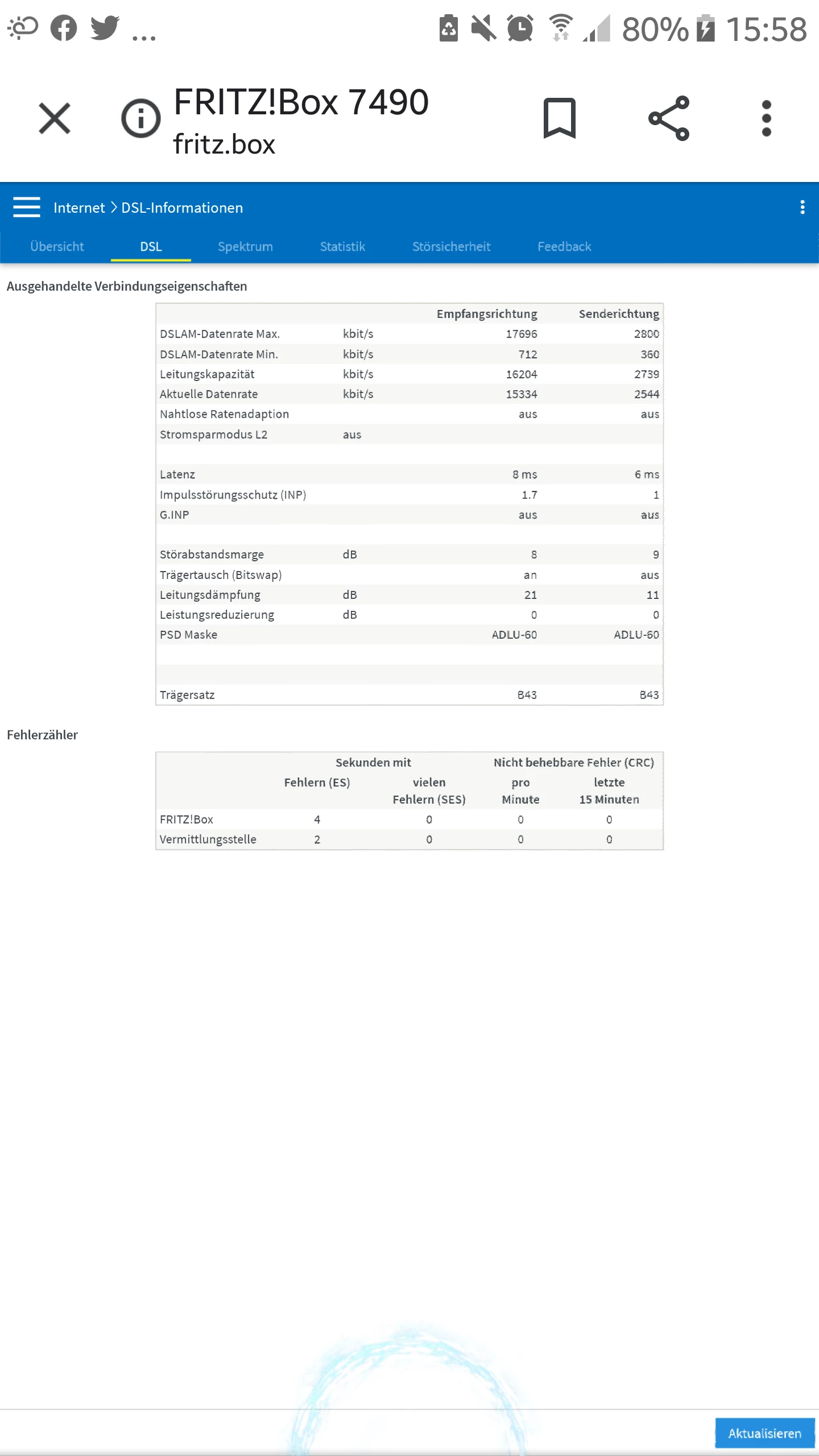 Dann solltest du in der Fritzbox die Leitungswerte prüfen.