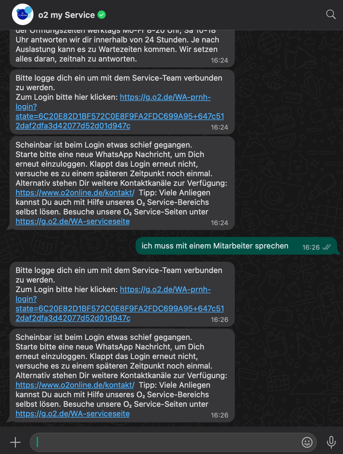 Wenn das Problem so einfach zu lösen ist, warum wurde das dann noch nicht gemacht? Ich habe gemerkt, dass die Frau nicht versucht hat, mir zu helfen, sie wollte mir nur noch mehr Mist von O2 andrehen. (Vielleicht hat sie nichts eingetragen, damit O2 wieder sagen kann, ich hätte mich nicht gemeldet, und somit sei es meine Schuld?)