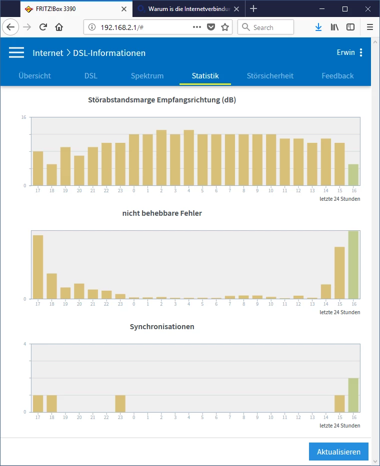 Ich habe ständig Verbindungsabbrüche. Seit 11. Januar bin ich online und seitdem ist die Verbindung instabil. Manchmal ist es besser, aber heute ist es dramatisch. Was ist loss? AVM router..
