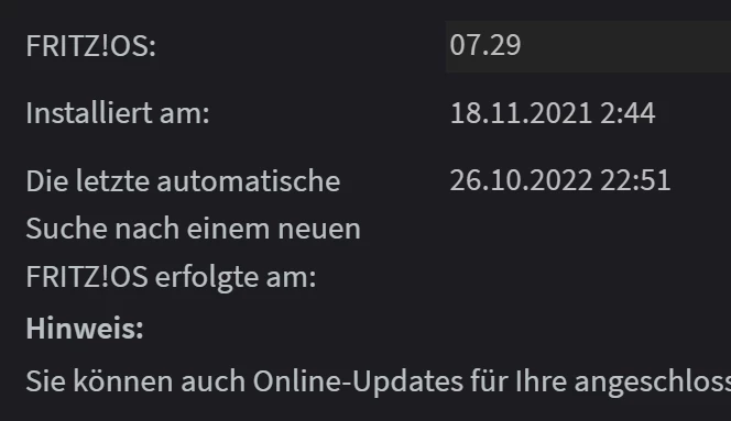 Ansonsten gab es seit dem 18.11.2021 kein Update in der Fritz!Box mehr und es lief ja unter dieser Version über ein halbes Jahr lang tadellos.