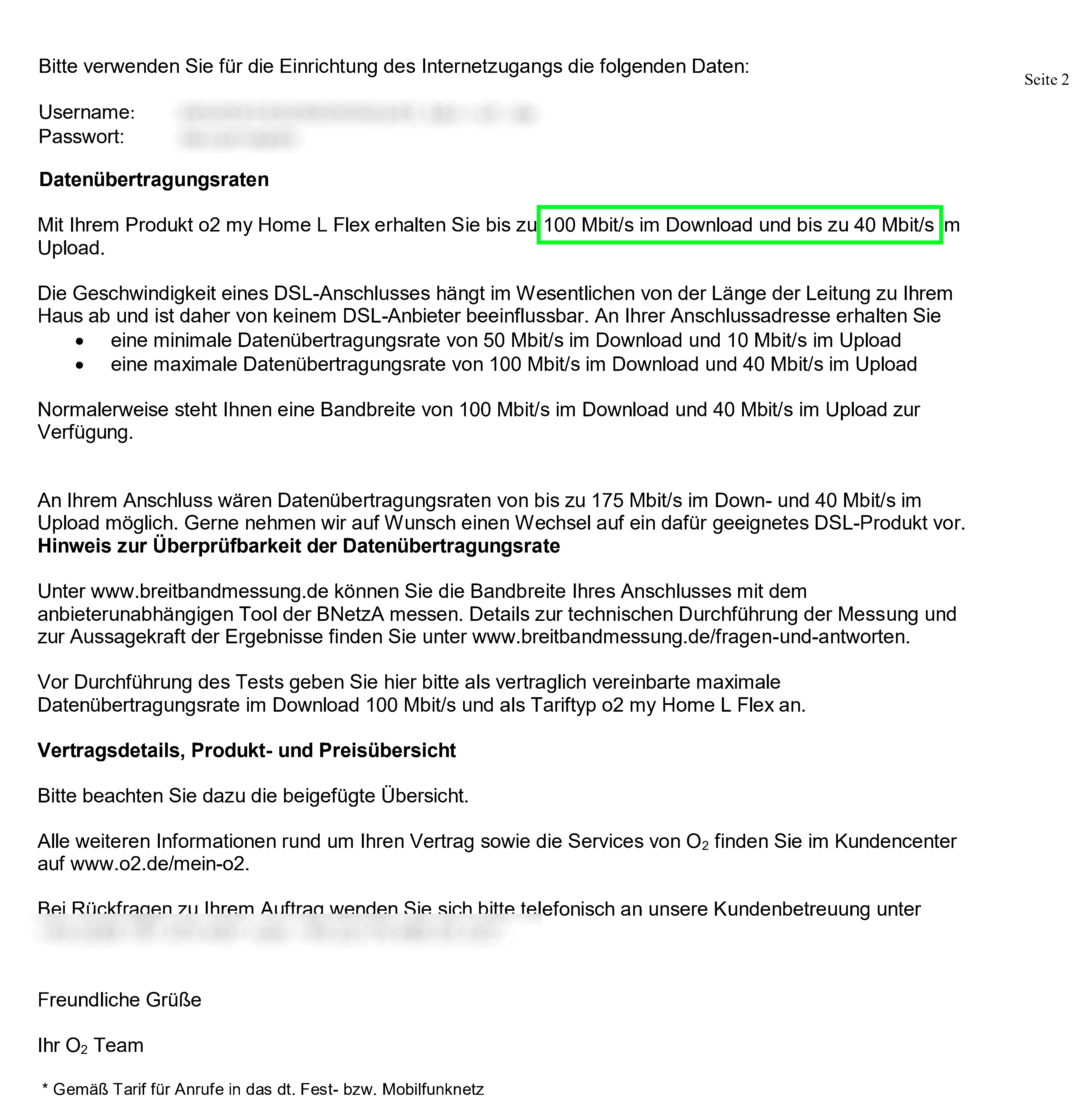 Tatsächlich sehe ich hier nur einen Tarifwechsel auf 100 Mbit/s über o2 my Home L Flex, welcher abgelehnt wurde, da wir dir die Bandbreite nicht anbieten können.