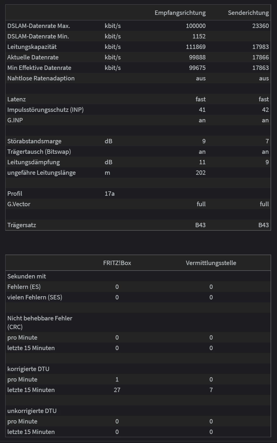 Das alles erklärt ja auch nicht, warum vorher die vereinbarten ~40 MBit/s im Upstream möglich waren, die dann plötzlich auf unter die Hälfte absackten.