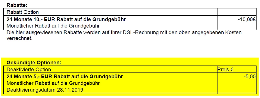 Wie kommt es dazu? Aufgrund des Vertragsabschlusses über Check24 gab es für die ersten 24 Monate 15€ Rabatt auf die Grundgebühr. Wieso sollte nun ein Teil davon gekündigt werden?