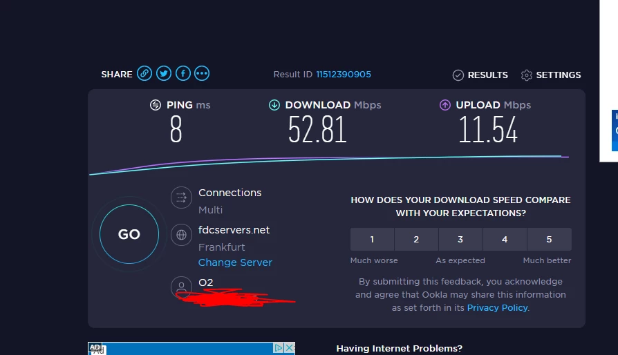 Habe den Test auf jedem erdenklichen Gerät ausgeführt, über Power-LAN, über WLAN, über den Rechner direkt am Router: Alle Ergebnisse gleich. Und O2 meint: “Die Latenz ist kein Bestandteil des Vertrages”.