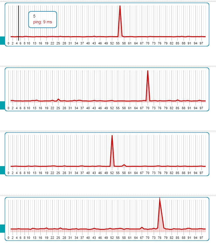 Bin auf die Seite https://www.geschwindigkeit.de/ping-test/ für Tests gewechselt. Server stehen in Deutschland. Gleiche Ergebnisse: