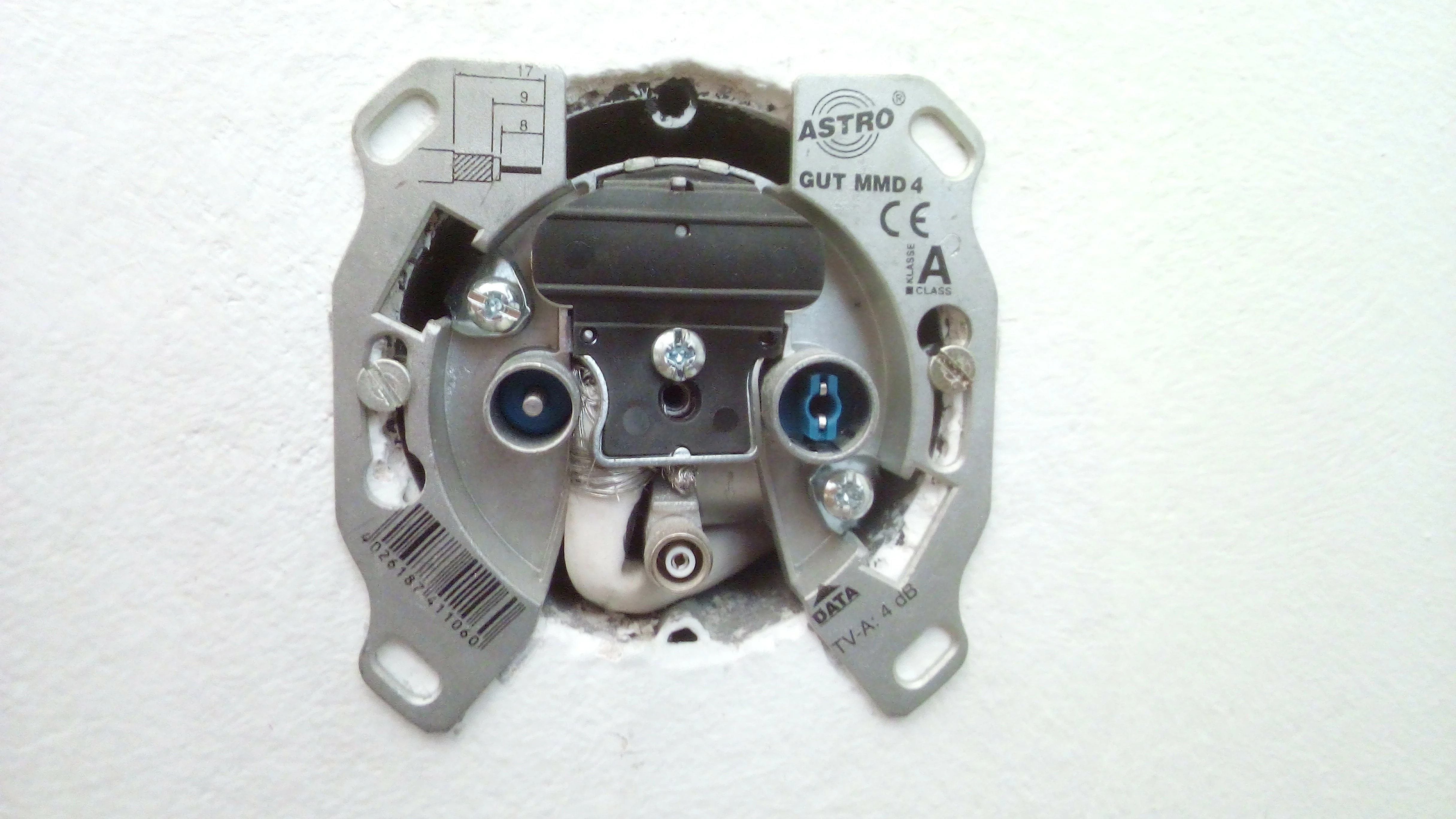 Also eine runde Buchse auf die ein Koax-Stecker passt, hat nun mal auf der anderen Seite (in der Wand) auch ein Koaxialkabel, da brauchen wir jetzt nicht noch extra Bilder (wenn es geht, kannst Du sie natürlich trotzdem noch hochladen).