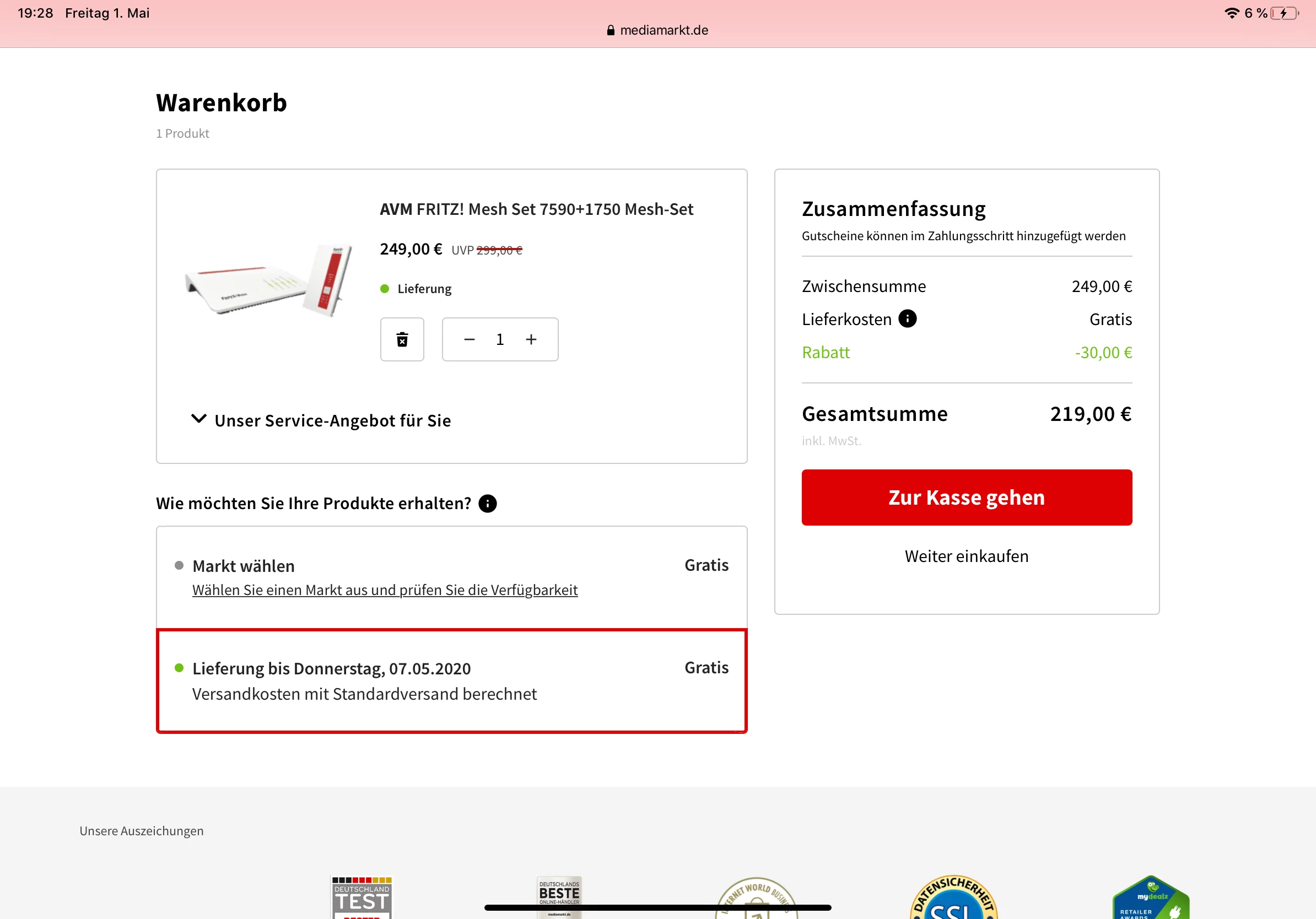 Hier beim Markt mit dem M im Namen, gibt es ein Set für 219€ statt 299