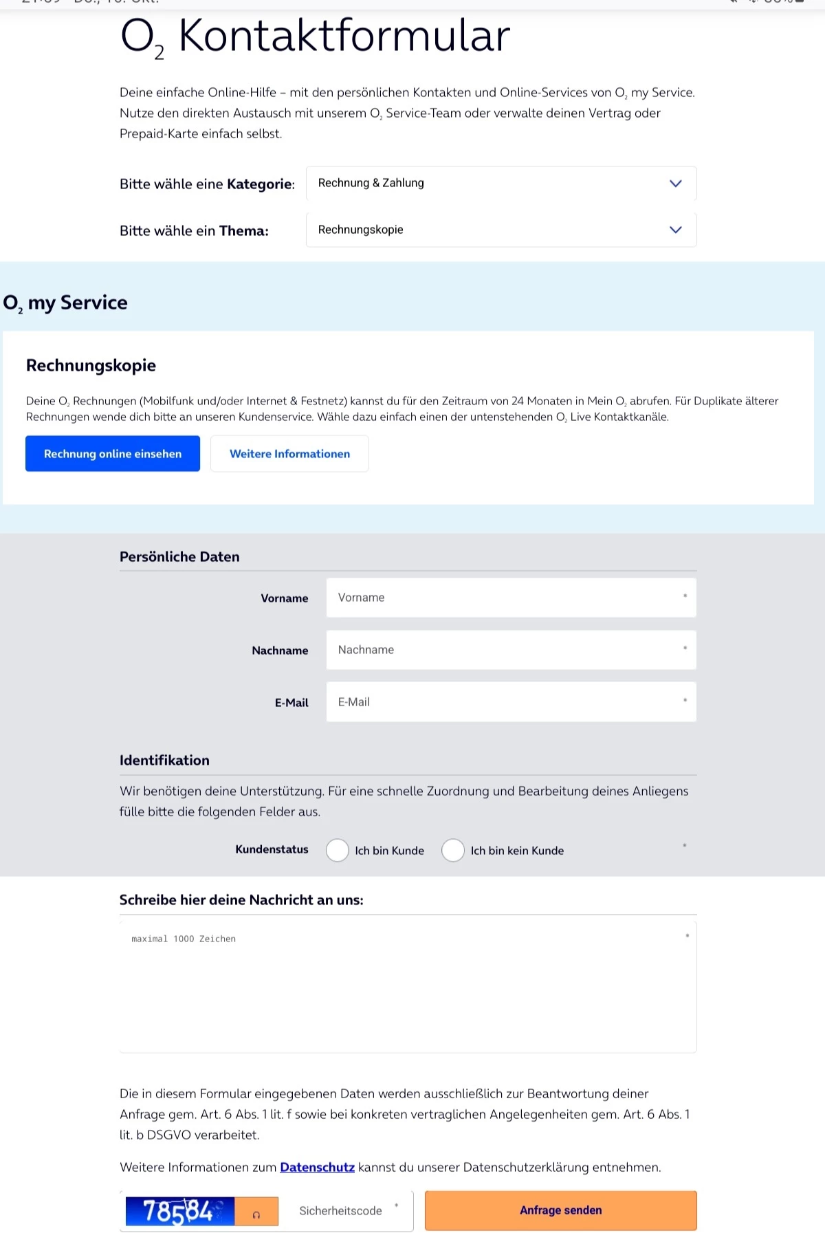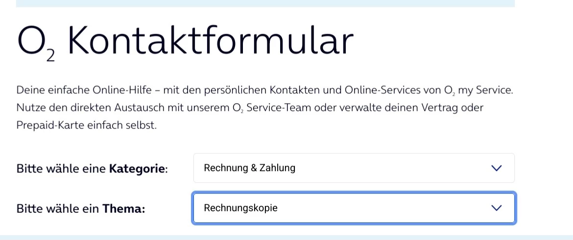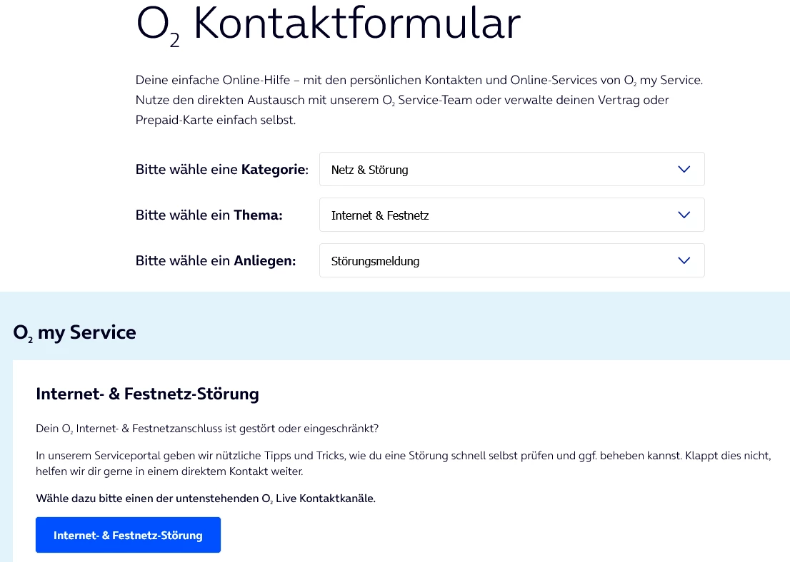 Kontaktformular: Über das Kontaktformular auf der o2-Webseite können Sie Ihr Anliegen per E-Mail schildern. ​@Brachr123