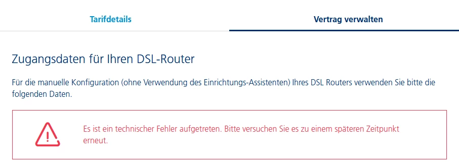 Ich vermute ja weiterhin ein neues Telefonie-Kennwort, aber statt der Routerdaten gibt es weiterhin nur diese Fehlermeldung: