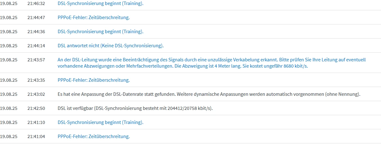 Wiederkehrende DSL Verbindungsabbrüche