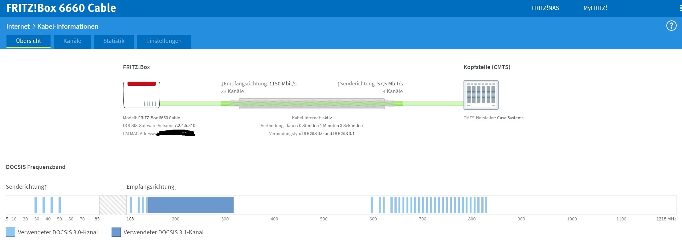 Fritz!Box 6660 mit einen o2 My Home L Kabel - 100/5 Vertrag