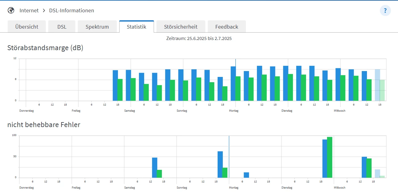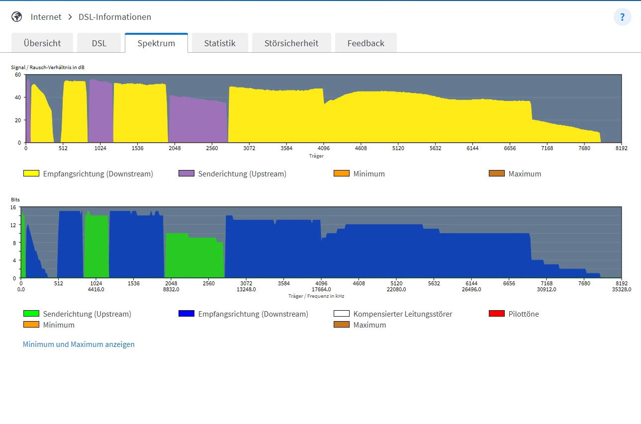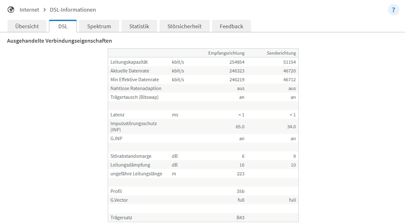 @gaby309 Can you please post screenshots from the Fritzbox Internet/DSL Informationen/DSL (incl. DTU error page) and Spektrum?