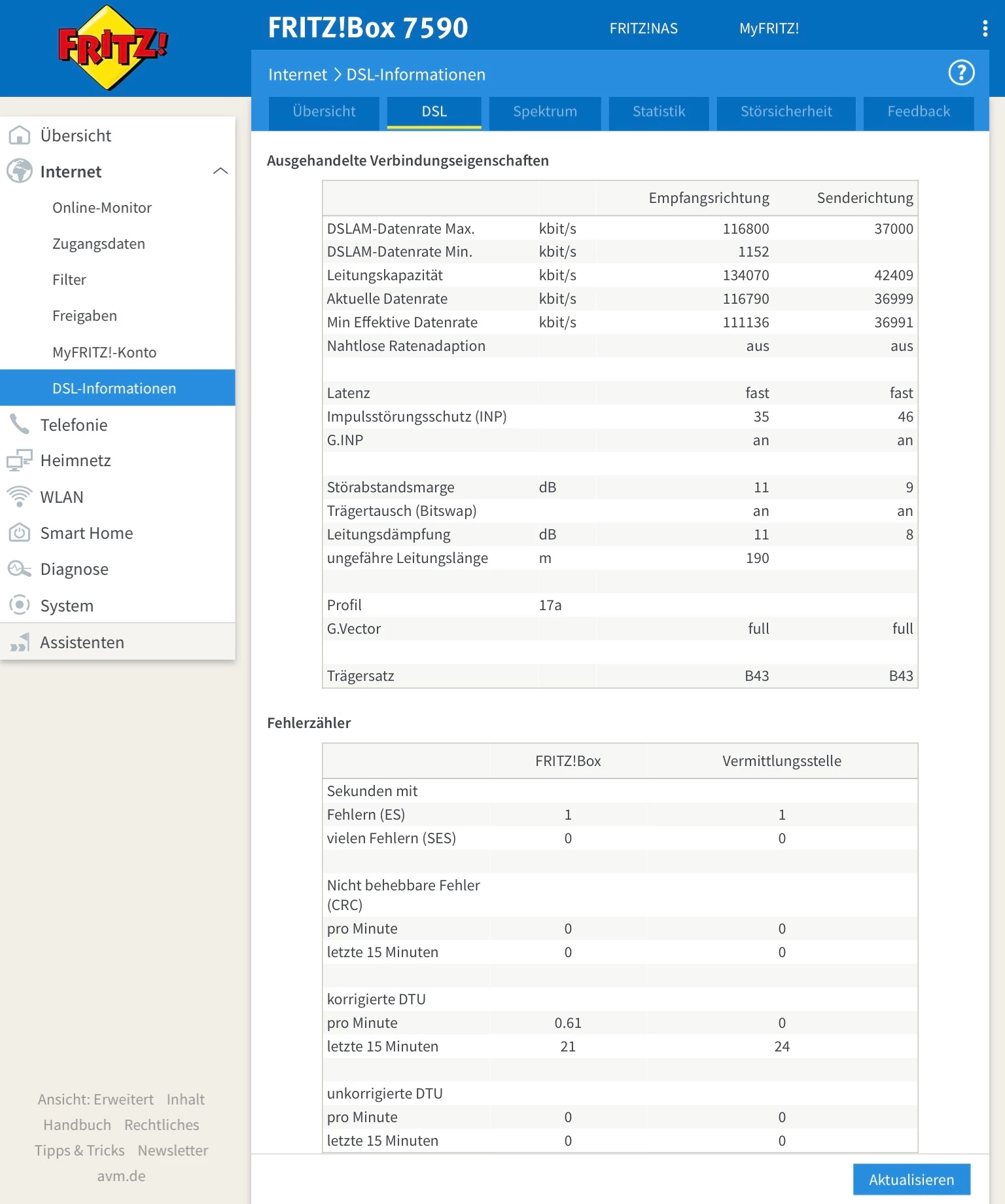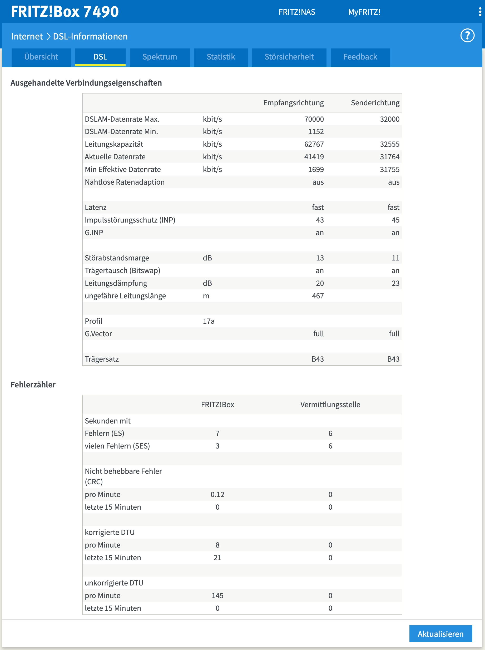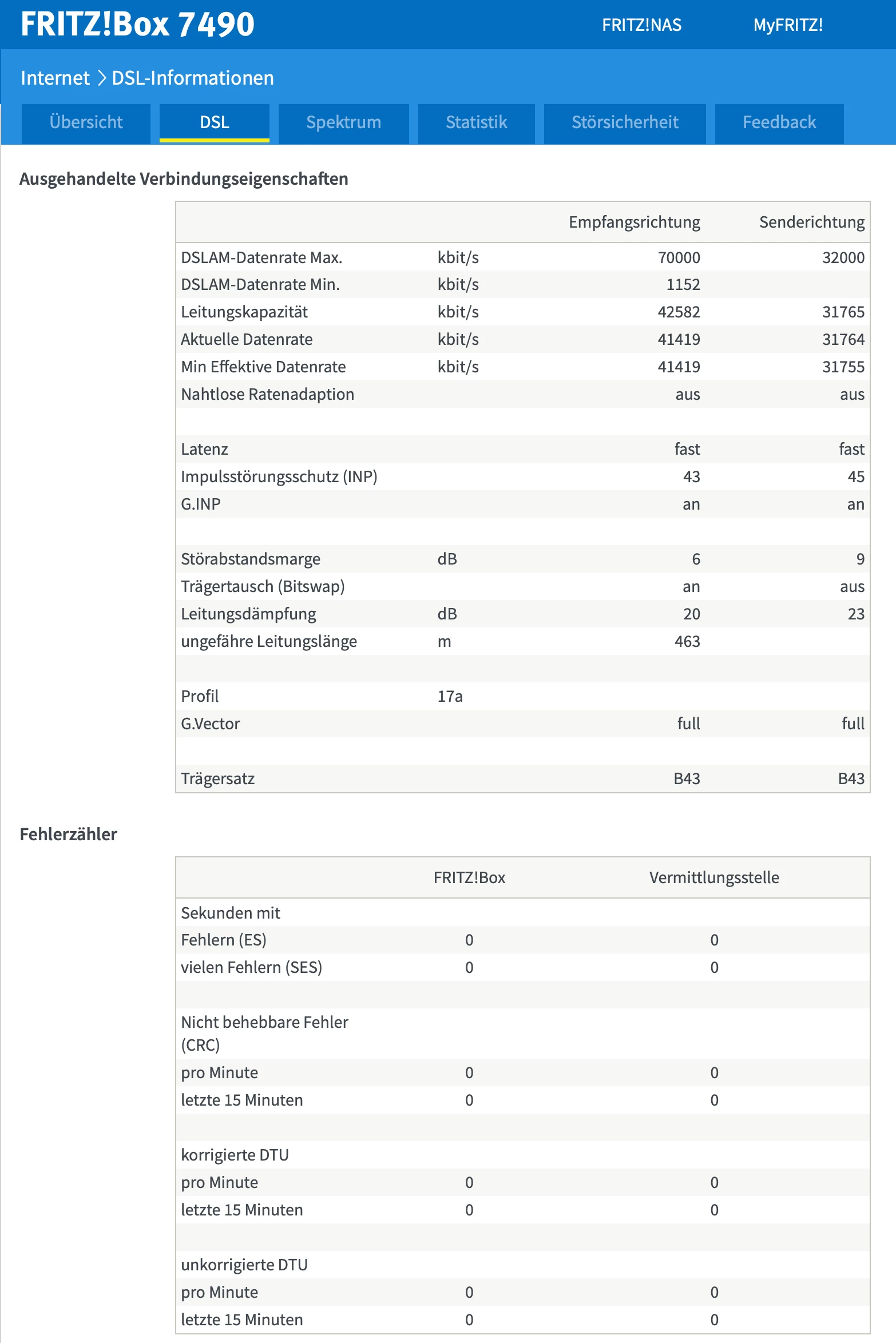 @ElVinEgre Welche Fritzbox wird eigentlich genau eingesetzt? Poste bitte auch einen Screenshot von Internet/DSL Informationen/DSL inkl. der DTU Fehler.