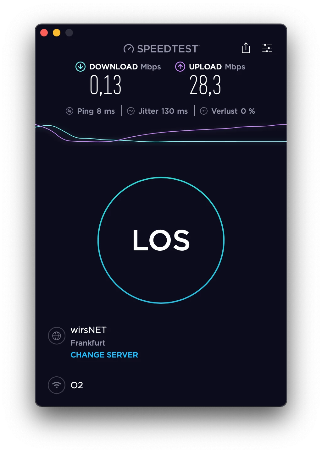 • Wenn ich aber einen Spendetest mit zB fast.com mache, haben wir gerade mal einen Downstream von 440kbit/s!!