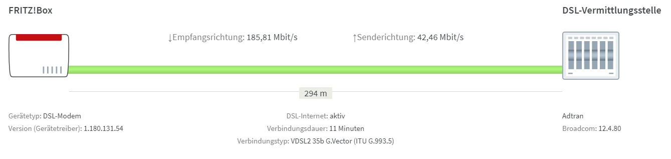 Im November 2020 habe ich meinen DSL-Tarif von vormals 16K auf 250K ändern lassen. Aktuell kommen nur ca. 185K an.