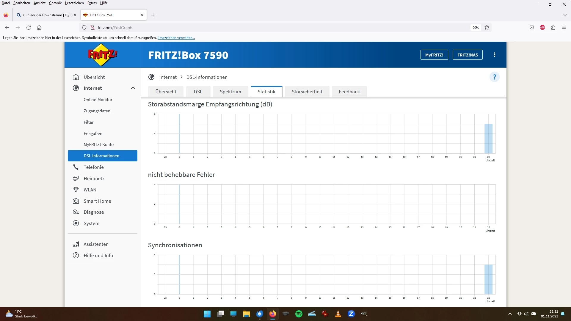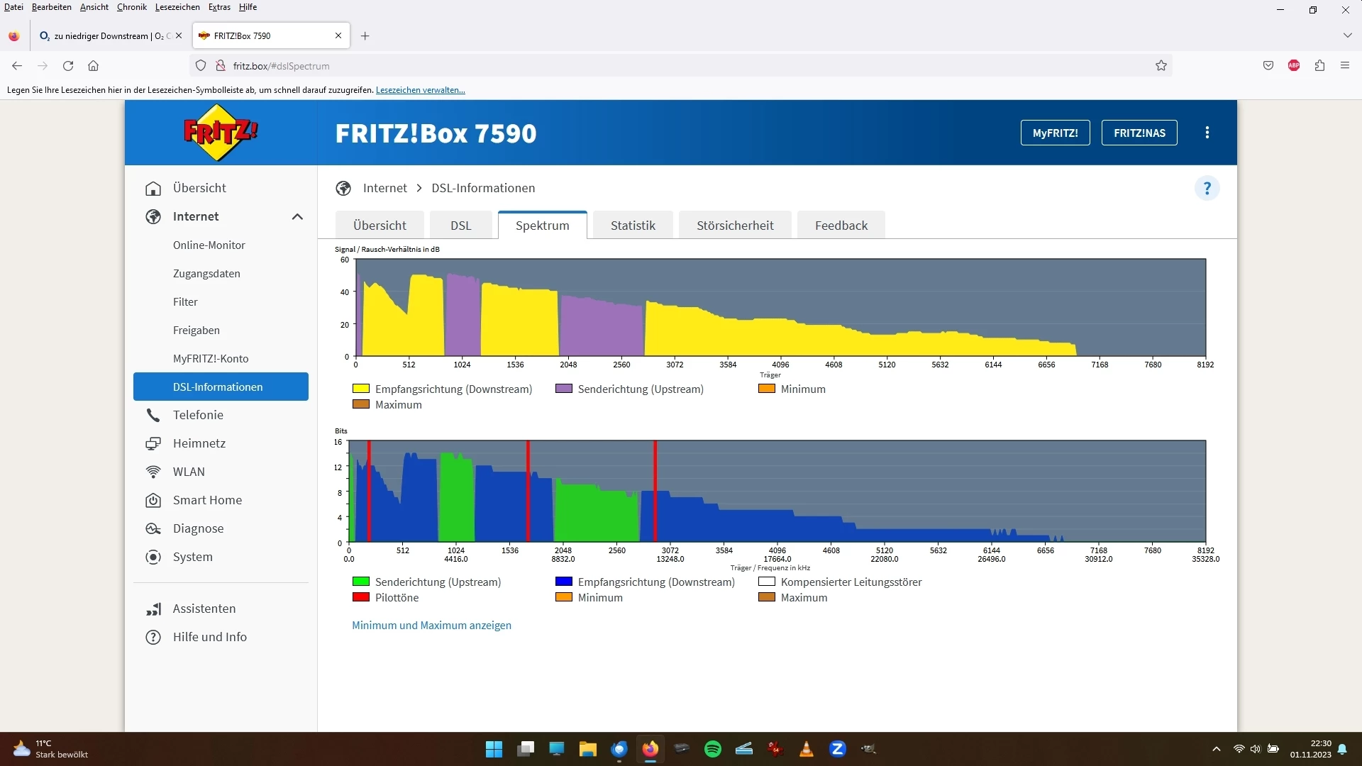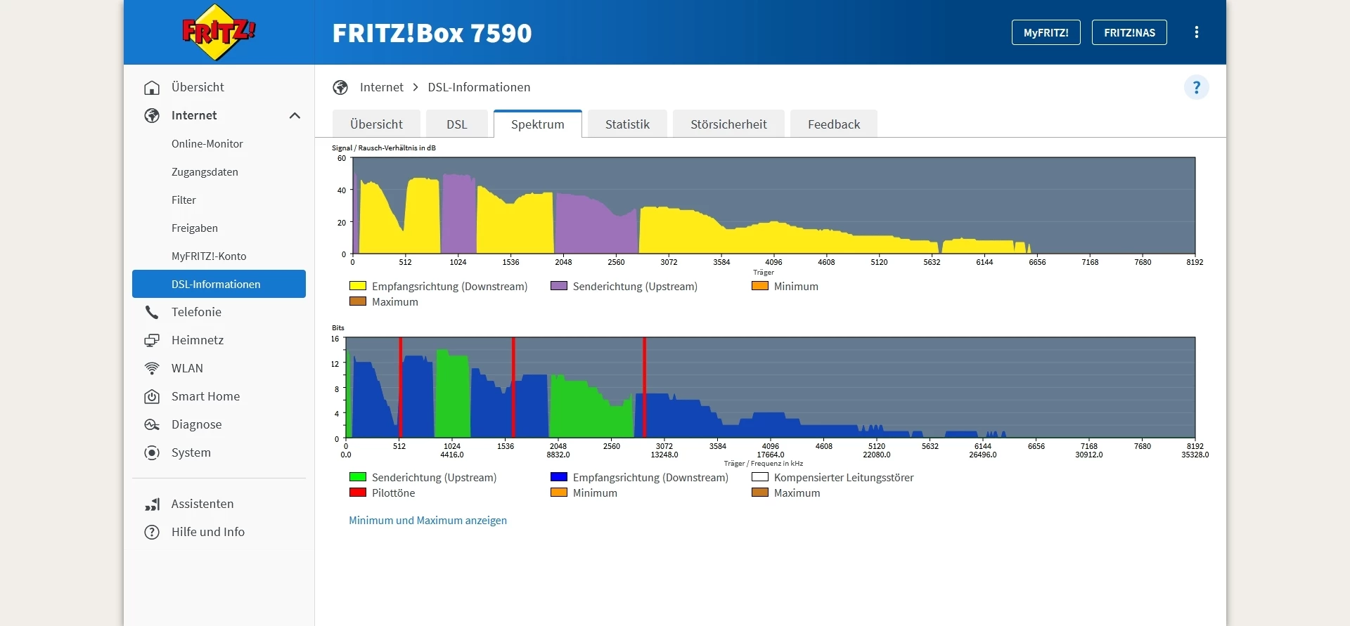 Bitte mal Übersicht, DSL (alle Werte da geht es noch runter), Spektrum und Statistik (Woche) hier als Bild hochladen.