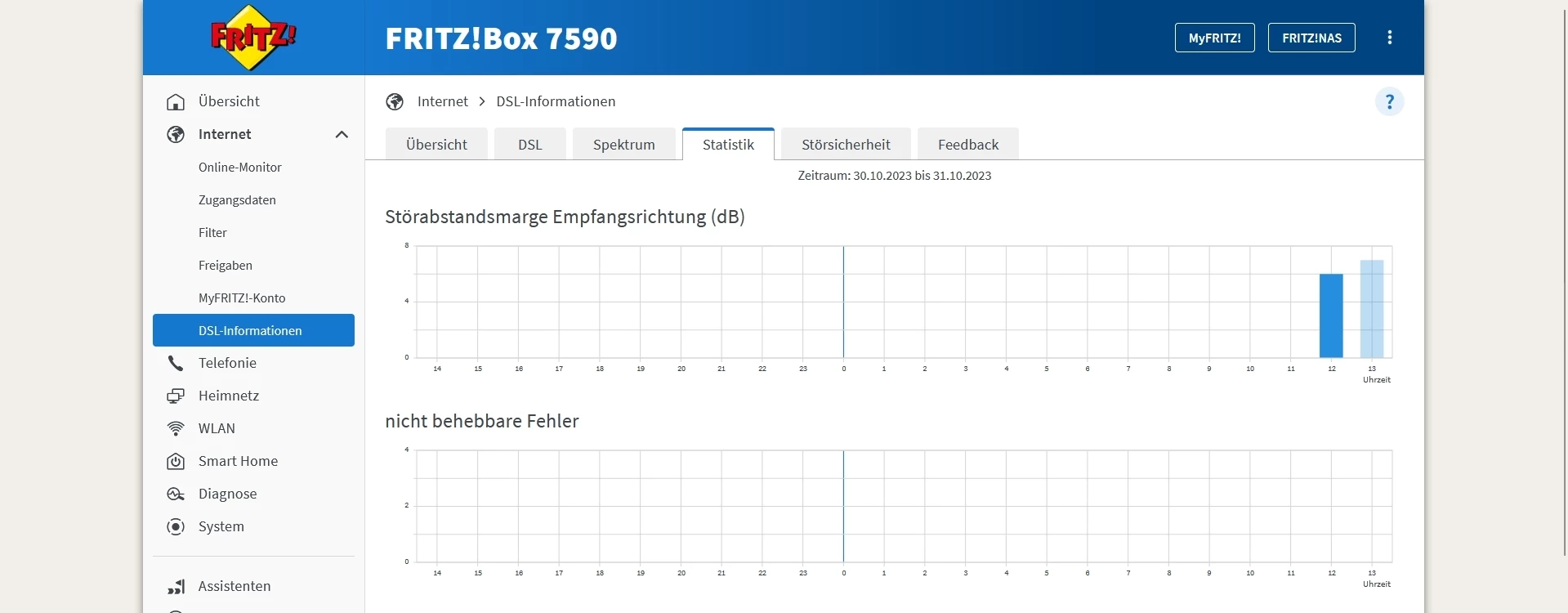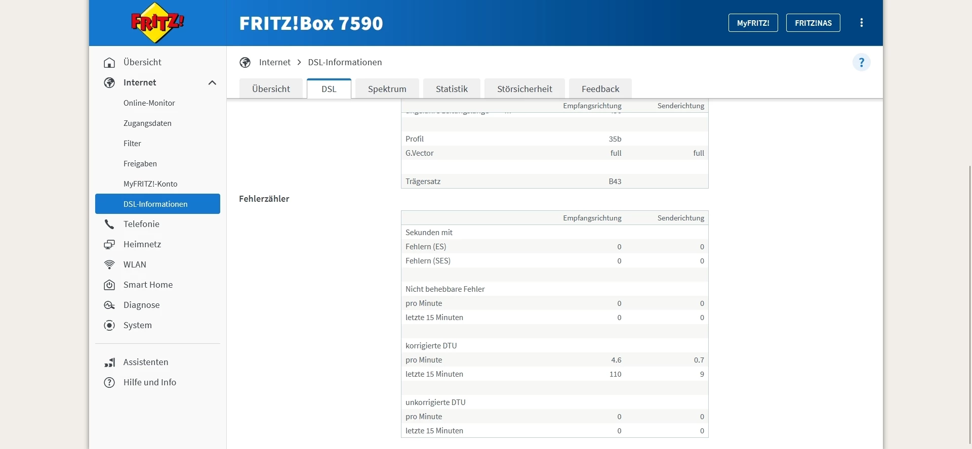 Also die Entfernung zum DSLAM liegt laut der Fritzbox bei rund 800 Metern.