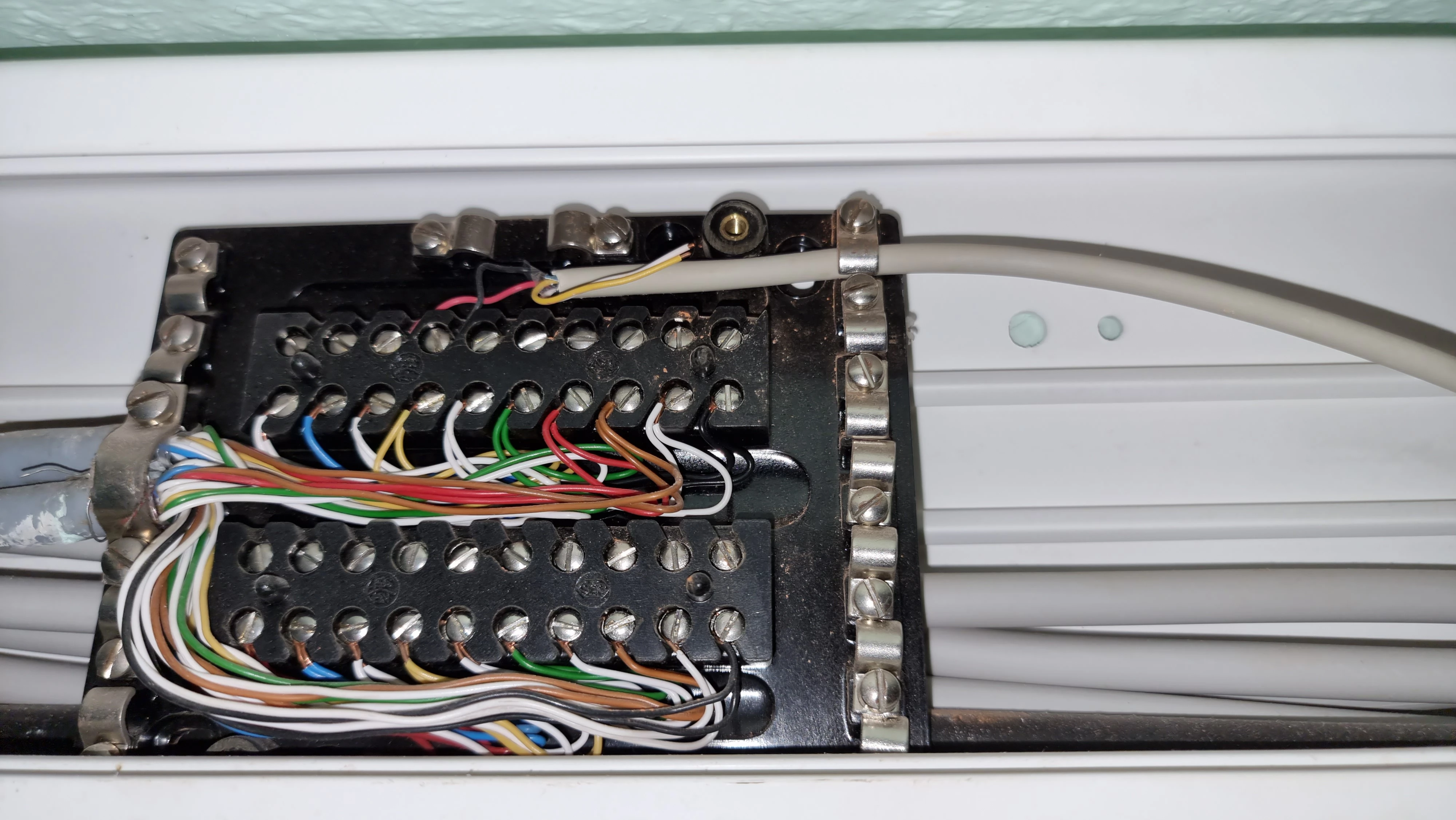 So wie sich mir das darstellt, ist das ankommende Adernpaar (jeweils rot eingekreist) schon parallel angeklemmt, also zwei weiße und zwei gelbe Drähte, was das ganze noch verschlimmert.