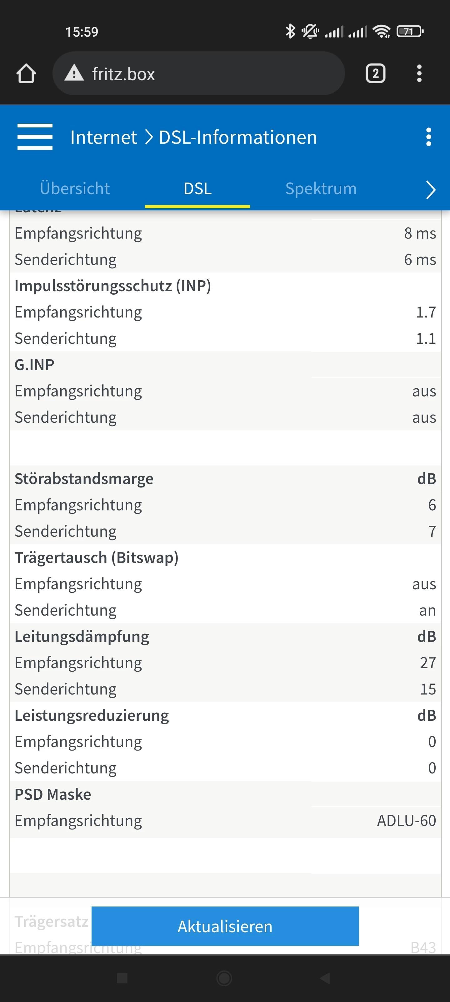 @Sary47 Ok. Dann ein Blick auf deine Leitungswerte. Bitte einen Screenshot von Internet/DSL Informationen/DSL. Danke.