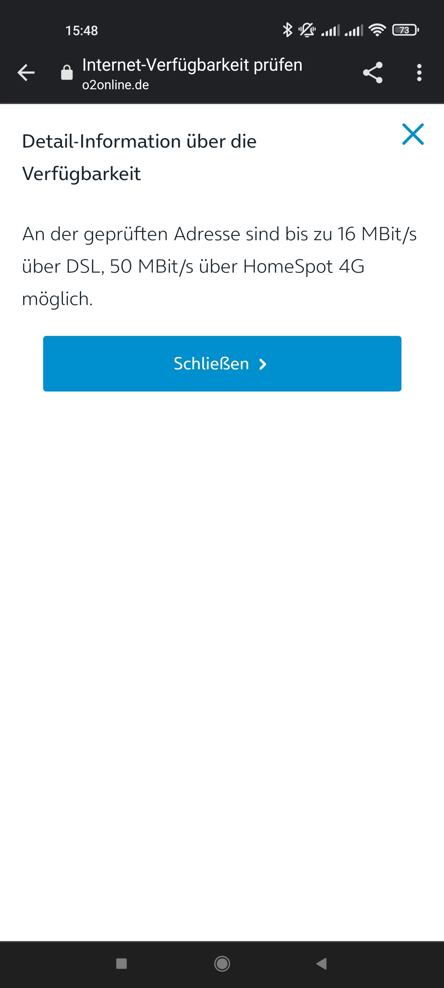 Bitte nach der Verfügbarkeitsabfrage auf das i klicken und sich die Übertragungstechnologie (unterschiedliche Geschwindigkeiten für LTE/DSL/Kabel) anzeigen lassen.