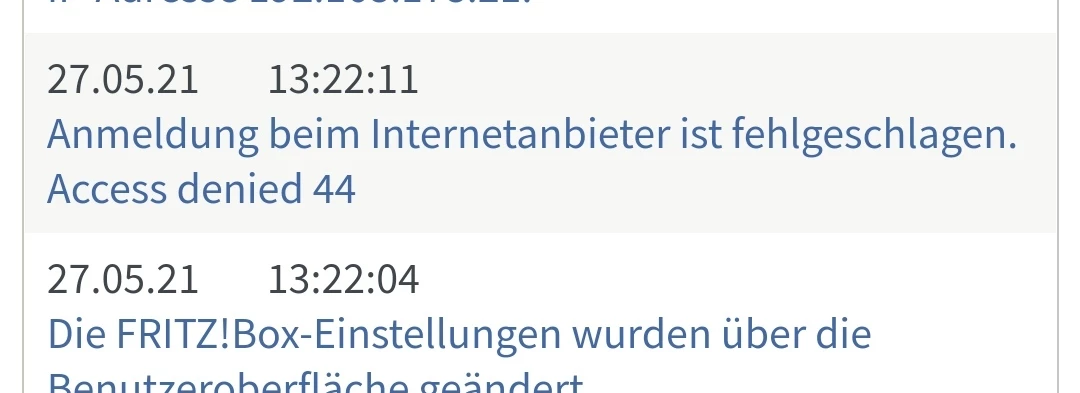 Die Kollegen an der Technik Hotline können auch sehen, dass die Fritzbox sich versucht immer wieder mit den alten / falschen Daten einzuwählen.