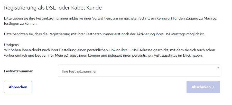 Du musst dich mit Festnetznummer registrieren, sofern der Vertrag aktiv ist.