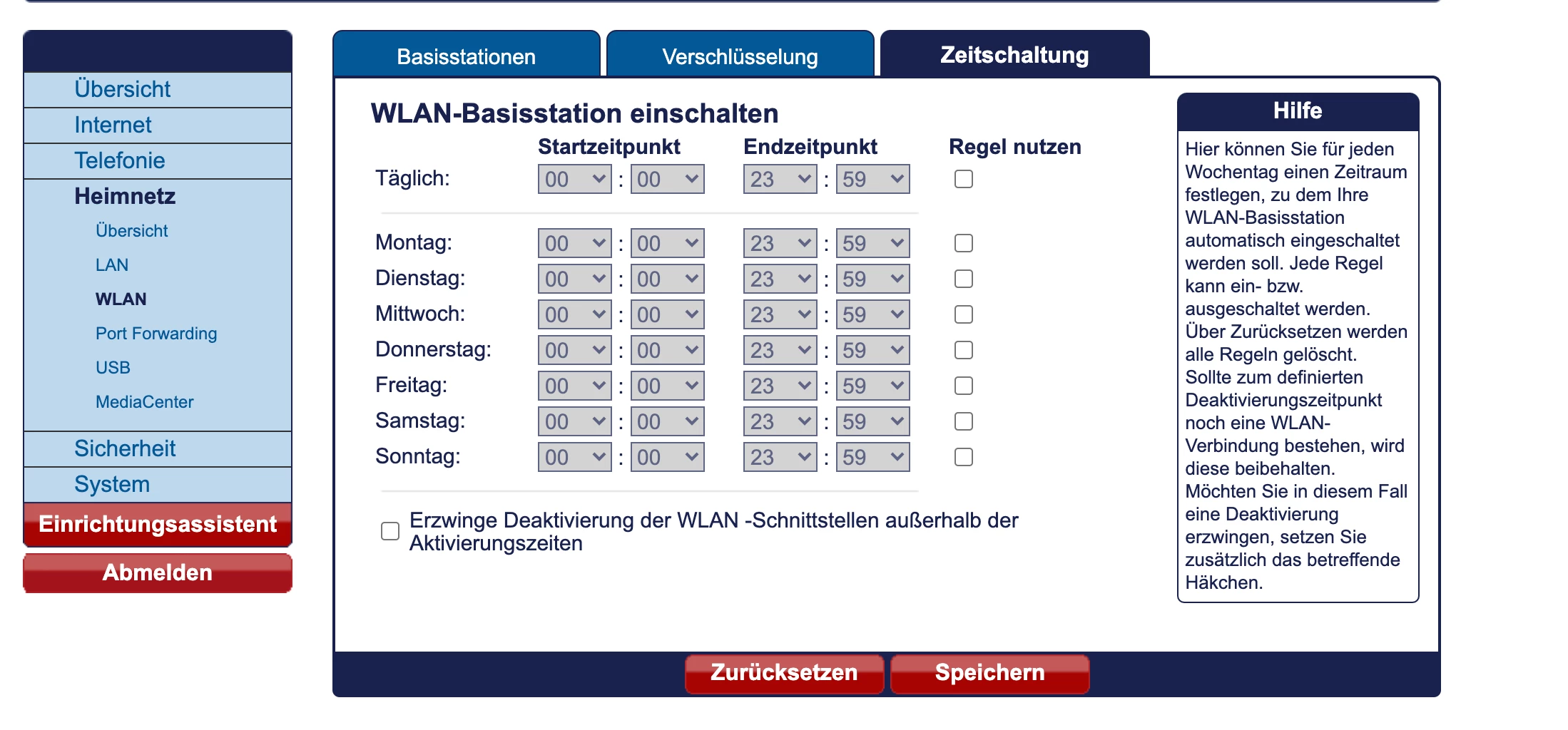 In der Schnittstelle 192.168.0.1 habe ich nicht die Möglichkeit, den Zeitpunkt der Zwangstrennung zu wählen. Ich habe die Software O2 my service suite heruntergeladen, aber ich habe nichts gesehen.