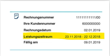 The invoice is always generated retrospectively for a specific service period. You can see the service period in the top right corner of the first page of your invoice.