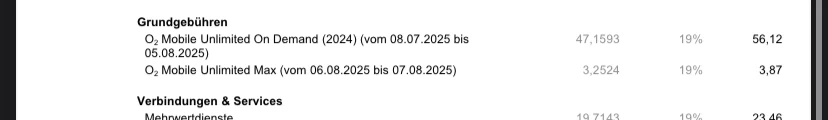 @o2_Gerrit nein, ich sehe dort eine Rechnung für den vorherigen Tarif, der nur eine Woche gültig war, und für den neuen Tarif, zuzüglich anderer Beträge.