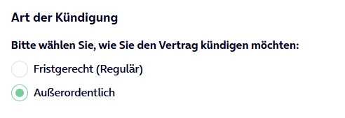 Please select “außerordentlich” here for an extraordinary cancellation and provide a brief explanation.