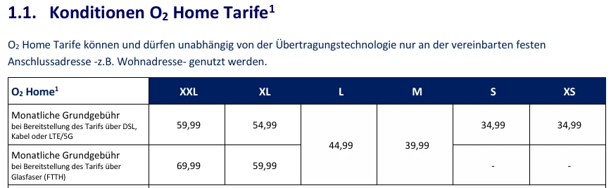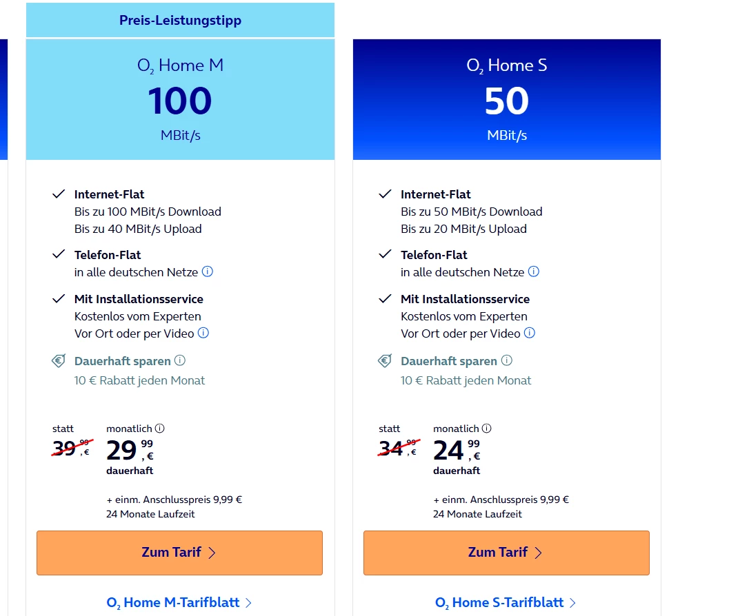 The monthly base price for o2 Home M 100 is EUR 39.99. See price list.