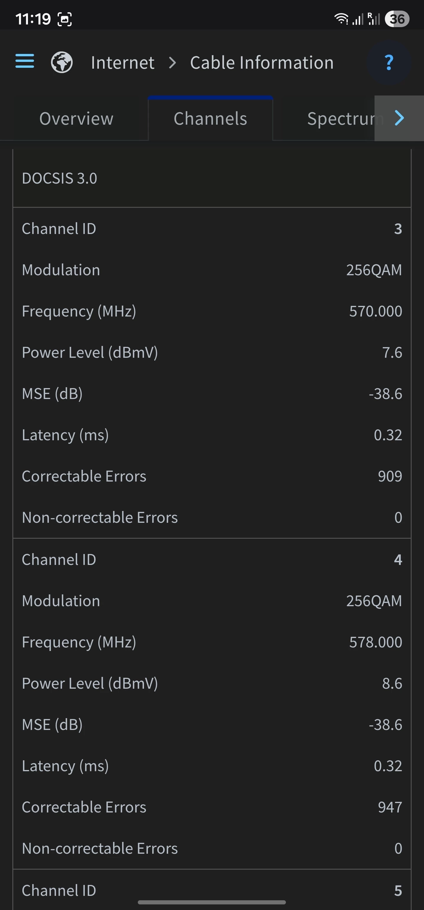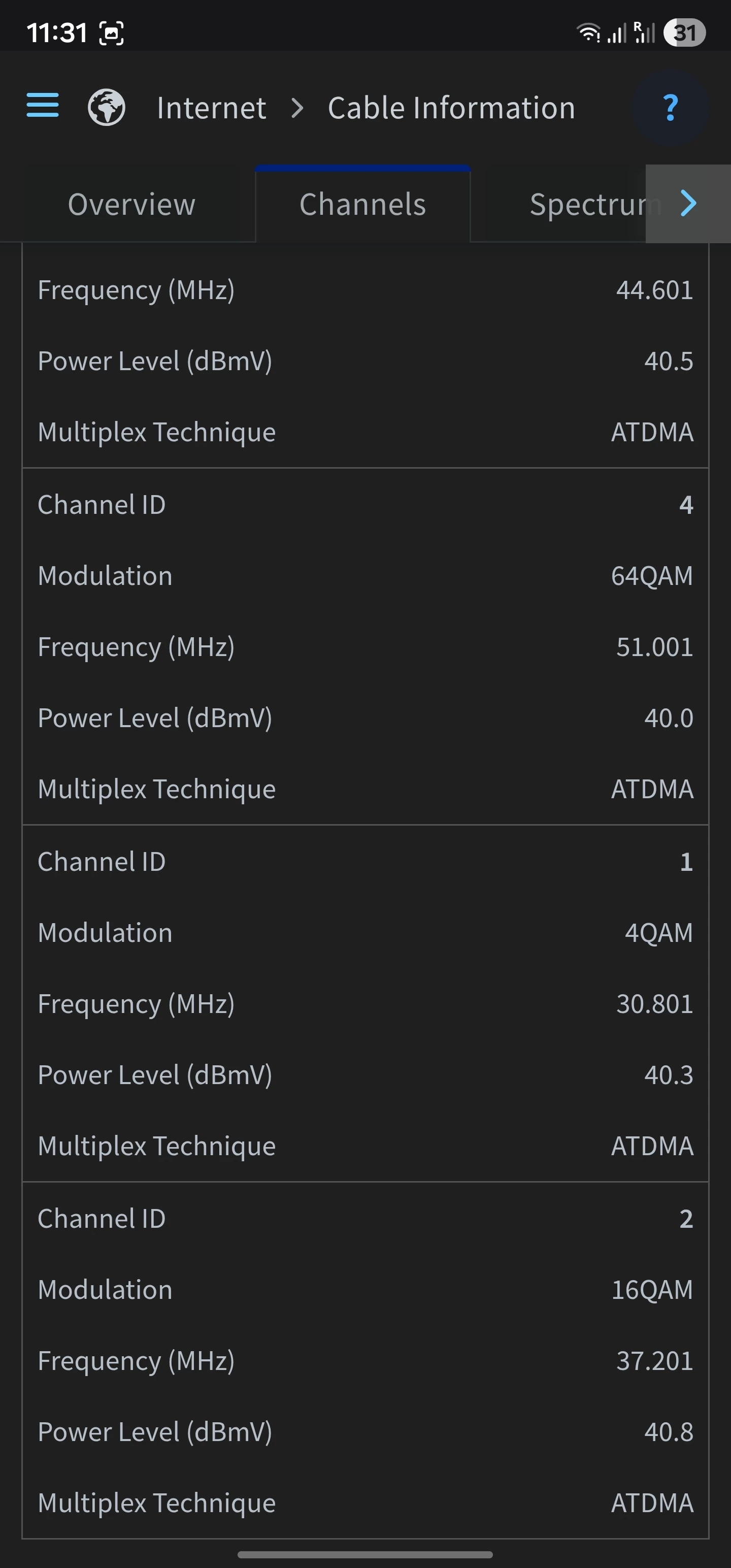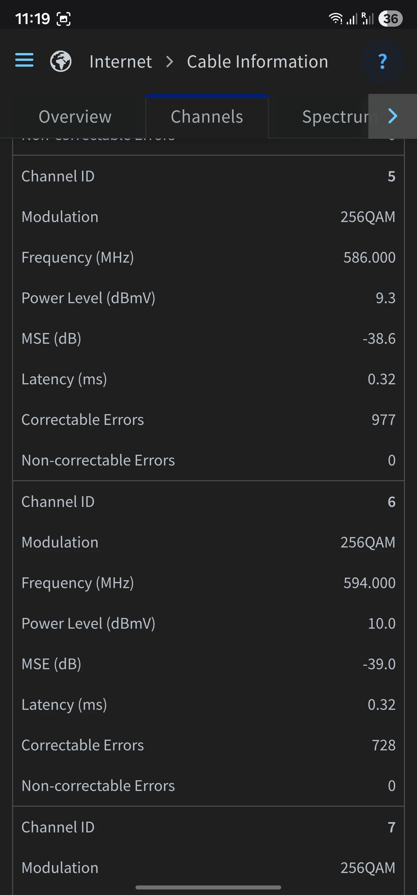 Channel 1 is only using 4QAM instead of 64QAM