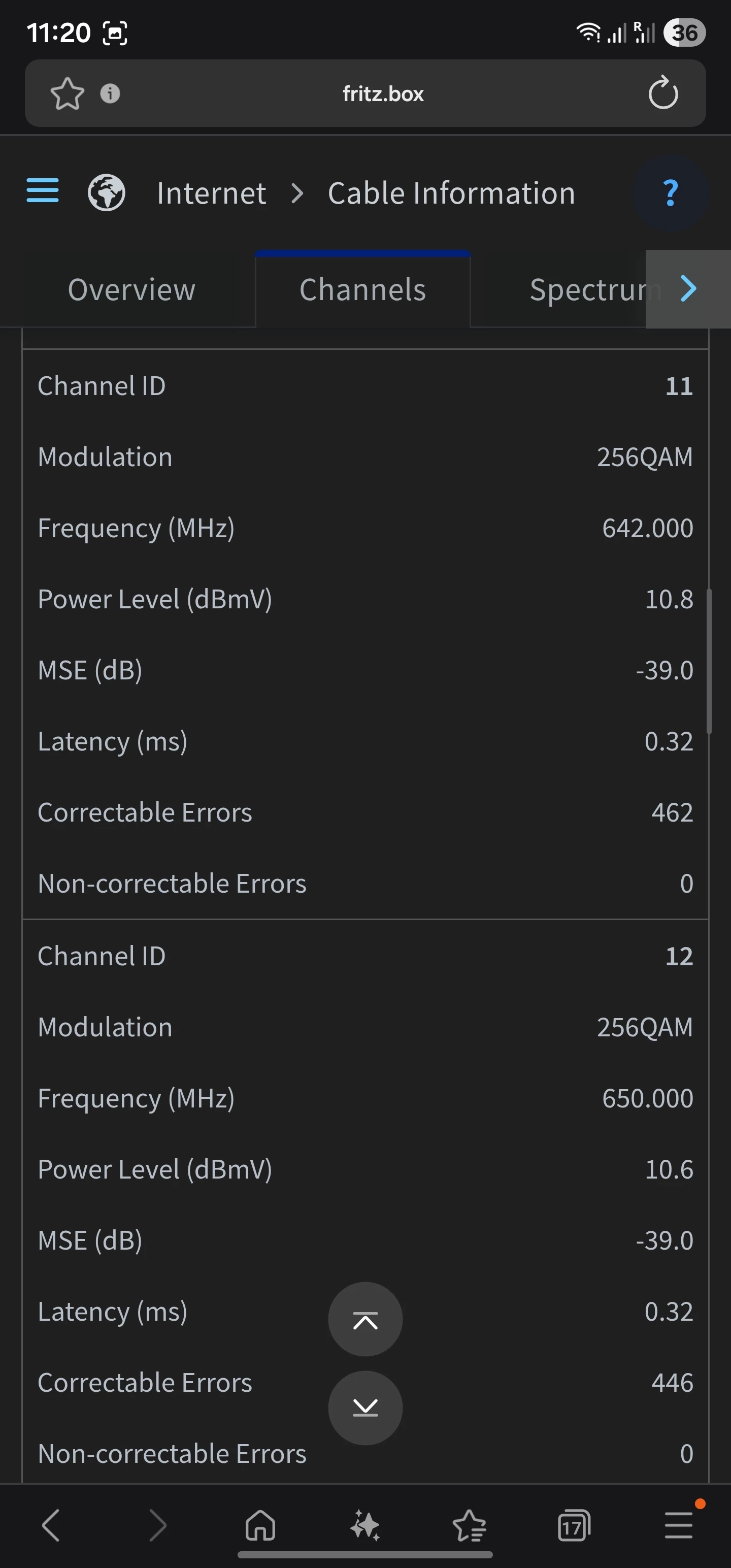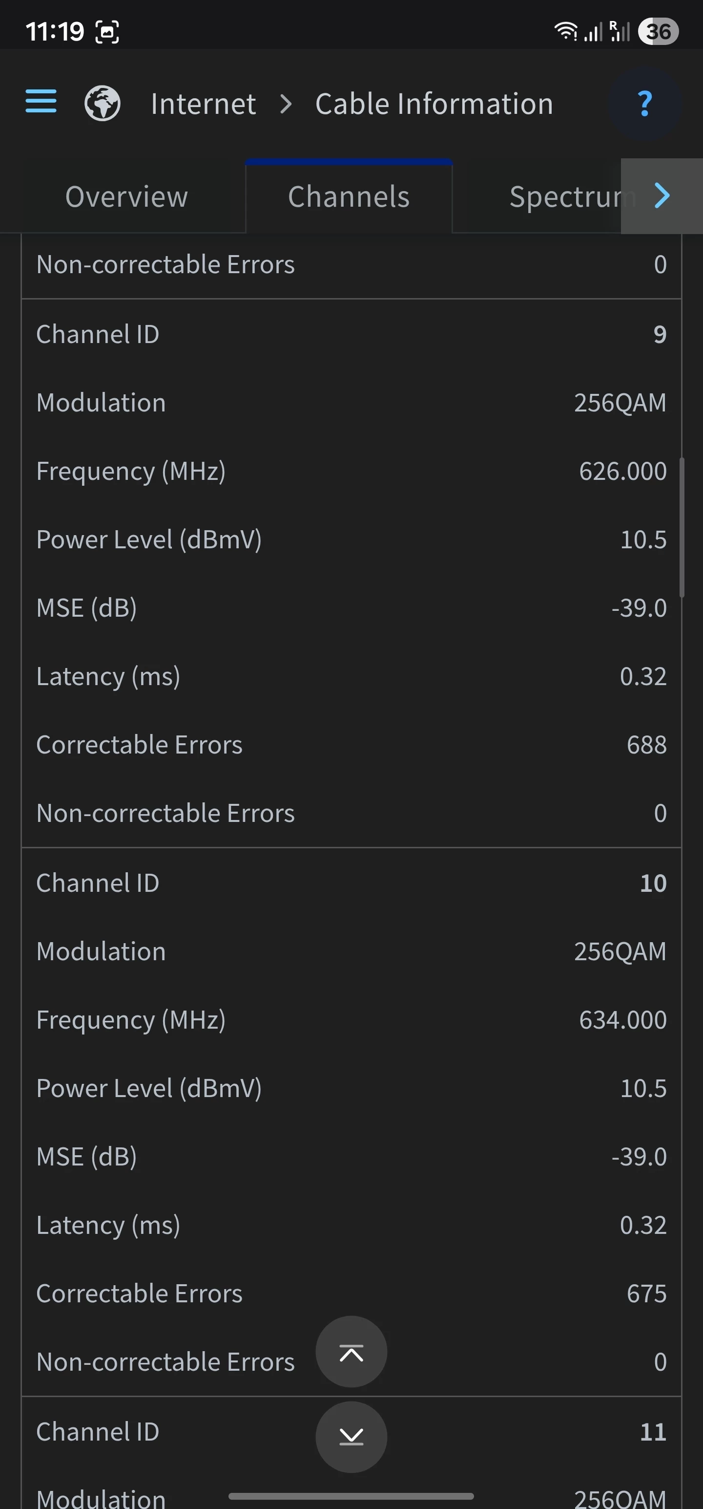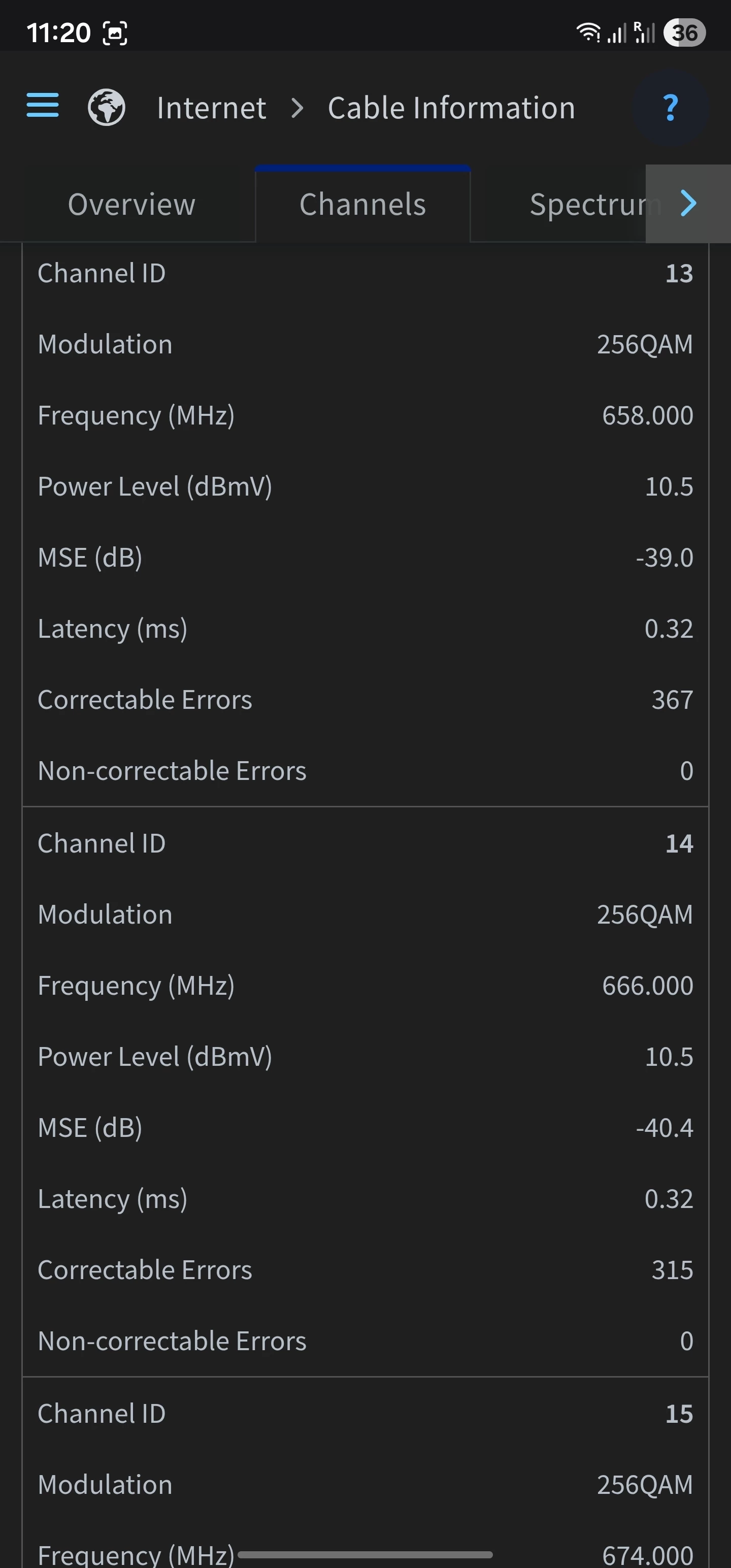 Channel 1 is only using 4QAM instead of 64QAM
